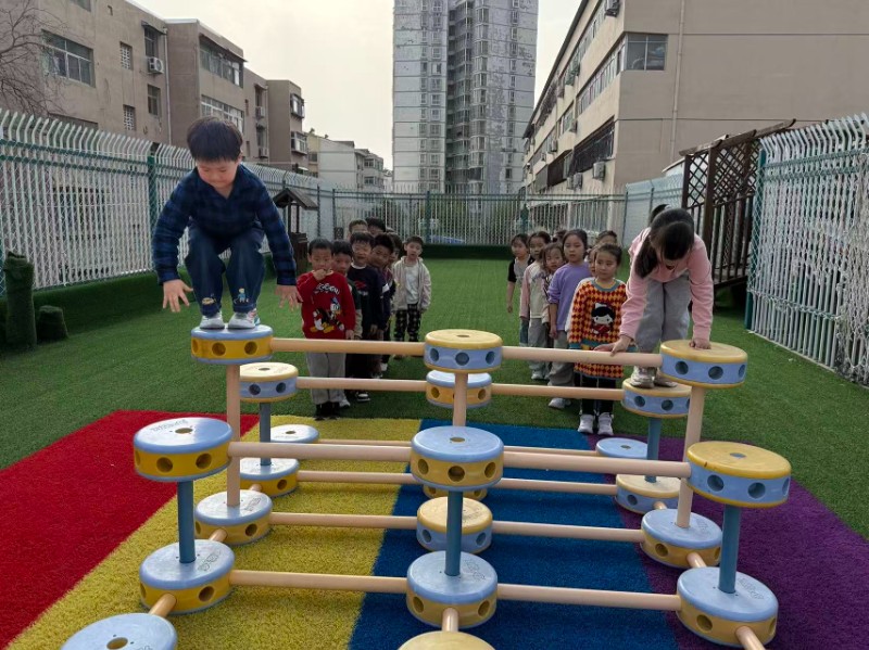 户外活动之~万能工匠:新乡市城建幼儿园大… 他们个个都是小勇士,从敢于初次尝试攀登、走平衡桥…在老师…