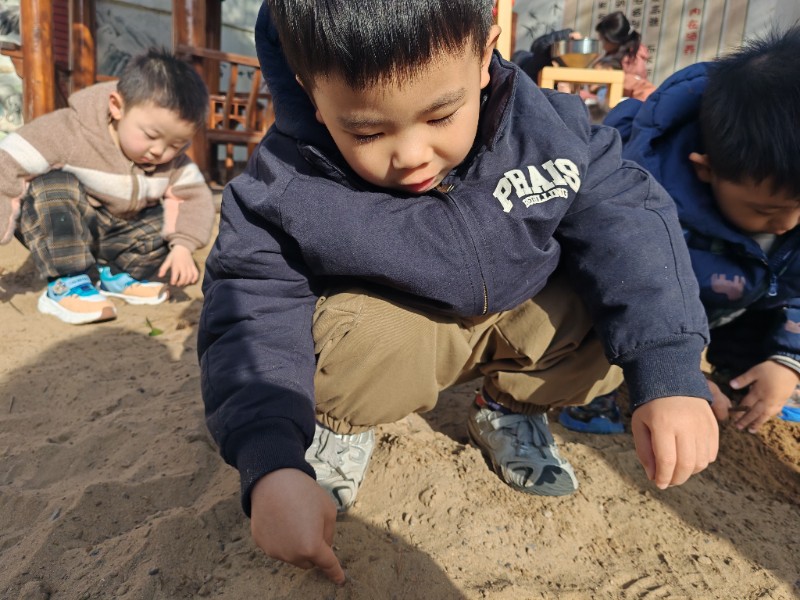 沙子的秘密:新乡市城建幼儿园小五班 孩子们来到沙池边,满眼的好奇,沙子会动吗?沙子能盖房子吗…