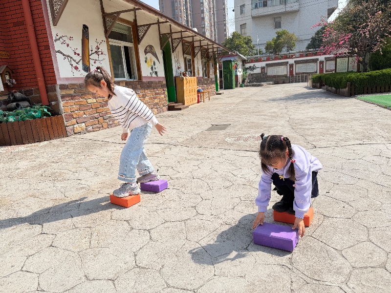 户外活动——步步为营:新乡市城建幼儿园大… 用小小的积木铺成前行的路,每一步都踏实,每一步都在长大。…