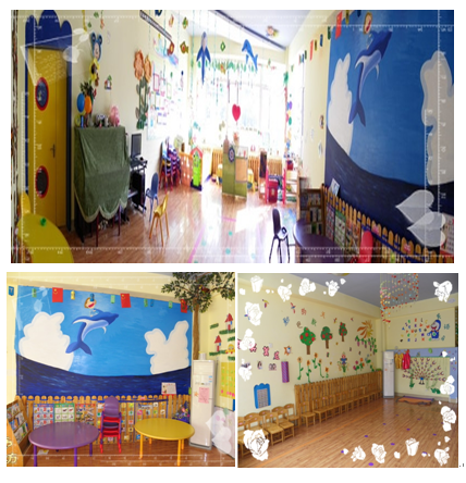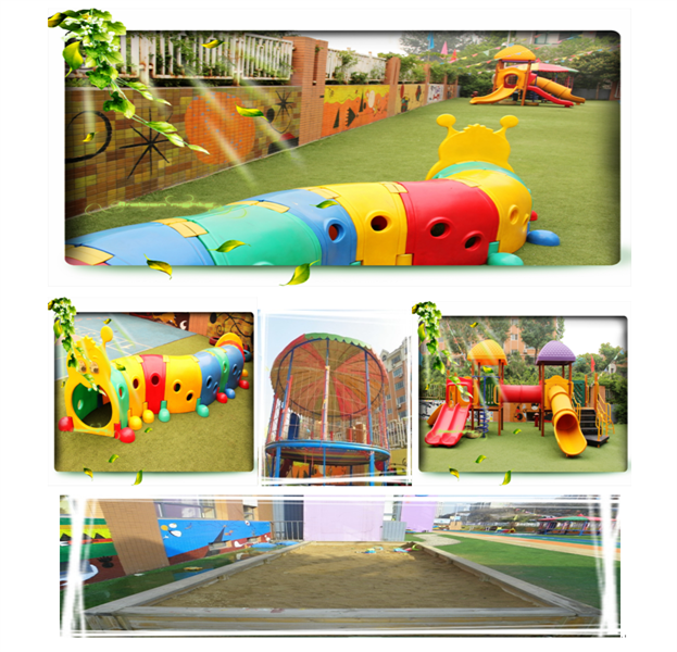 园所投资配备了多媒体智能白板、投影仪、教学音响、液晶电脑、立式钢琴、变频冷暖空调、空气净化器、加湿器等,充分尊重孩子的发展天性,设计了阳光大厅、亲子小剧场、科学探索室、创意美术室、ART绘本馆、温馨伴读室、童乐小驿站、屋顶自然角等富有人文关怀和盎然童趣的创意天地。室外铺设运动型专业艺术塑胶跑道和人工草坪,实现了幼儿室外活动场地地面全部软化,安装了大型工程塑料及原木游乐设施、蹦床、平衡木、沙池、荡桥、小精灵隧道等。园内建造了山、石、树、木、藤、桥、水车、瀑布等人文景观,开辟玩沙区、戏水区、养殖区、种植区,让孩子充分接触自然,培养他们尊重自然、和谐共生的人文理念。
