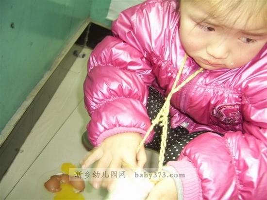 在活动中,一个幼儿准备一个鸡蛋,用一周的时间保护它,不让它破碎。同时,由老师讲解生命小秘密、结合课本中《我在妈妈的肚子里受到呵护》、《企鹅爸爸孵蛋》等故事,让幼儿了解一只正在孵化的鸡蛋就是一个生命,这个生命很脆弱,需要呵护。让幼儿在护蛋行动中让学生感受到呵护生命需要付出爱和责任。此后一周里,每天都有学生向我讲述自己或他人的护蛋情况。第一个夭折的蛋宝宝是杨娟养的,不到半天就失败了。当时,很多同学围着她,有的安慰她,让她重养,有的说她不太称职,不够细心……直到最后一天蛋宝宝还完好无损的只有十三人。