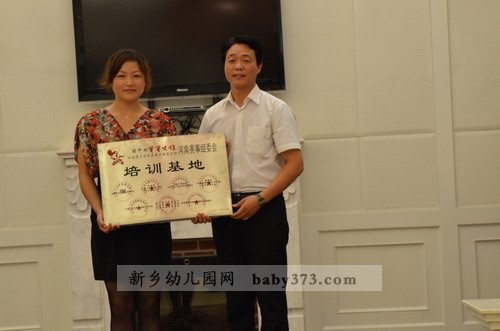 群峰教育总裁李老师为教办室幼儿园颁发“团中央星星火炬”河南赛事组委会培训基地