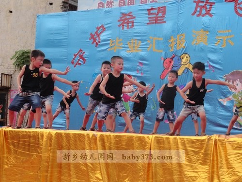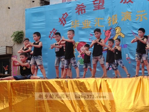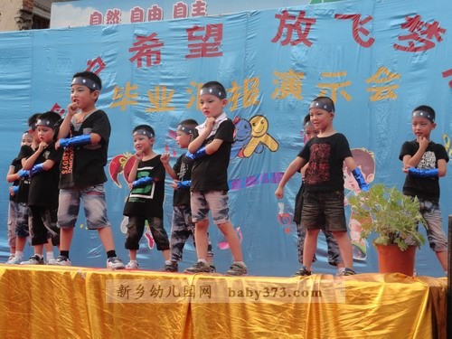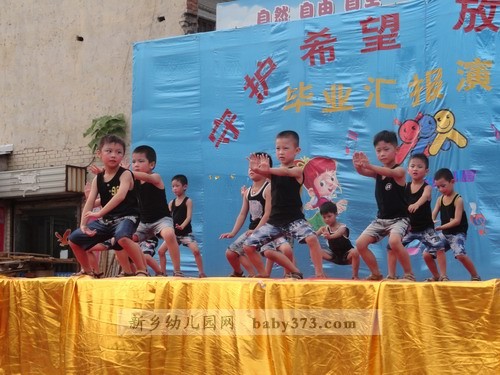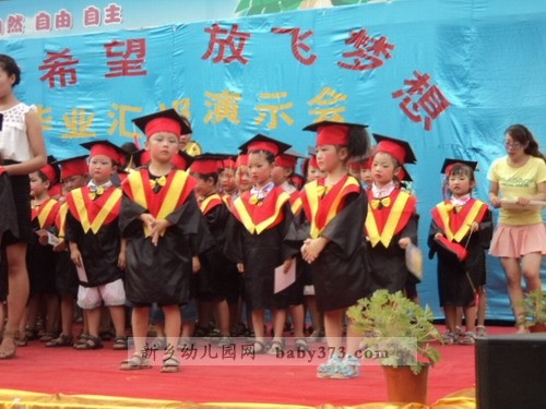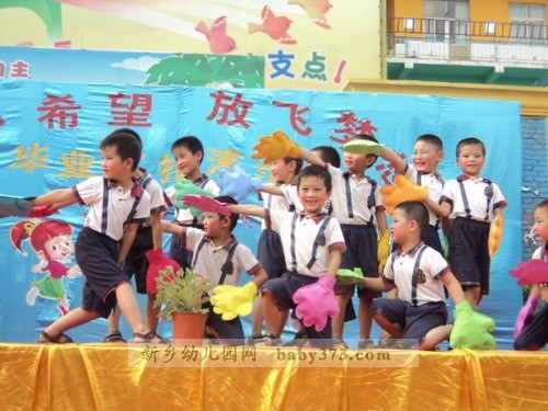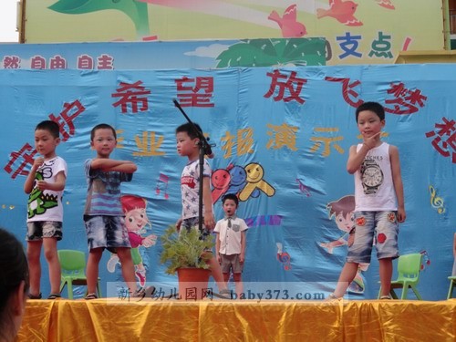 正式的文艺演出开始了,各位老师使出浑身解数,挖掘孩子们的特长,使每一位毕业班的孩子都参与进来,真正达到了100%的参与率。特别是一向在文艺演出方面不被受重视的男孩子们,这一次打破常规,为我们带来的《擦玻璃》《搏击操》《街舞秀》三个舞蹈类节目让我们对这帮小伙子们刮目相看,舞蹈动作娴熟有力,充分展示了小男子汉们阳刚的一面,让我们不再一味的认为女老师教出来的孩子就没男子汉气概。情景剧《三个和尚》,使在场的小观众们看的非常投入,小嘴巴里还不住的发出“嗤嗤”的笑声。相声《交通规则》被两位小男孩演的是诙谐有趣,生动到位,在欢笑之余,让孩子们真正懂得:交通规则要遵守,从小做起严要求。辩论会《爸爸好还是妈妈好》将演出推向高潮,台上的辩手发言机智幽默,台下的观众笑声掌声此起彼伏,走进一听,许多爸爸妈妈一起来看演出的这时也在台下展开了一场家庭内部大辩论。。。在这个舞台上,女孩子从来都是表演的精灵,舞蹈《举手发言》将四年的幼儿园生活搬上舞台,嘚不嘚>将孩子们的心声用舞蹈形式向平时对自己动辄就嘚不嘚”的父母提出了小小的抗议。。。学前一班的礼仪节目则将孩子们在幼儿园所接受的礼仪教育用演示的方法向众人做出展示,让孩子们从小“知礼”“懂礼”,成为儒雅大方的小朋友。最后程老师代表毕业班老师发言,字字句句无不透露着对孩子们的疼爱与不舍,站在孩子周围的老师们眼眶湿润了,台下的家长朋友们偷偷的拭去了眼角的泪水,台上纯真的孩子们毫不掩饰的嚎啕大哭,这毕竟预示马上的“分别”,所以,没有人去制止,没有人去掩饰,因为这是情感的真实流露,我们应该尊重这一份份深厚的情感。在《让爱传出去》的手语表演中孩子们从老师手中结果自己的“毕业证”,孩子们流着泪笑了…希望孩子们从这里起航,我们的爱会跟随着宝贝们一直一直…