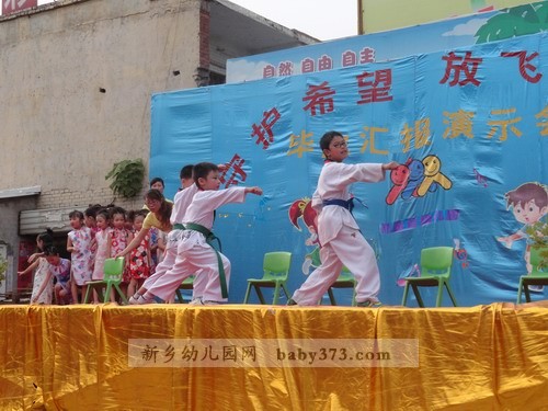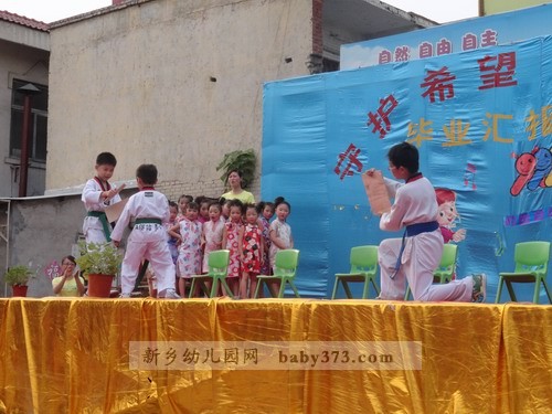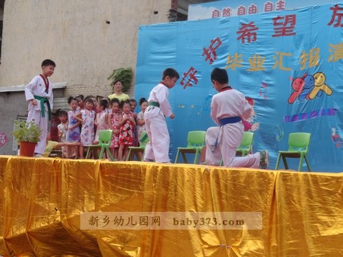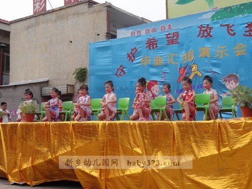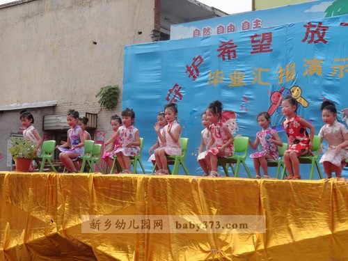 2012年7月6日下午4:30,在劳动桥的北岸,一场精彩的演出马上就要上演。100来位小演员,数十位指导教师,300多位小观众,再加若干位家长朋友,场面真可谓热闹非凡,空前盛大!在新乡市钓鱼台.爱贝儿幼儿园曹园长讲话,家长代表的发言之后,家长自发地为所有毕业班的老师送感谢信,送锦旗,家长朋友们的感谢之情溢于言表。