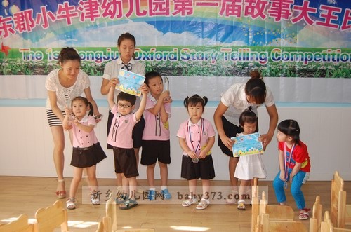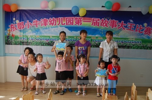 让我们把热烈的掌声送给获奖选手和参与表演的小朋友们! 一个好的故事,就是一块甜甜的巧克力,听来总是让我们回味无穷 听一个好的故事,就象做一个美美的梦,总是让我们久久难忘 听好故事,让我们充满幸福,充满幻想 讲好故事,让我们充满自信,充满欢畅 让我们再次用掌声祝贺获奖的小朋友 希望小朋友们再接再励 新乡市东郡小牛津幼儿园幼儿园故事大王讲故事比赛到此结束!