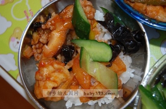 在摄取多种食物的同时,注意食物之间的搭配,做到平衡膳食。幼儿一日膳食中蛋白质、脂肪、糖分别占总热量的12%~15%、25%~30%、60%~70%,来源于动物性食品中的蛋白质占总量的1/3,豆类蛋白和植物蛋白占总蛋白量的1/2或1/3。新乡市东郡小牛津幼儿园制定食谱时,注意各类食物的互相搭配,形成互补,提高食物的生理价值。
