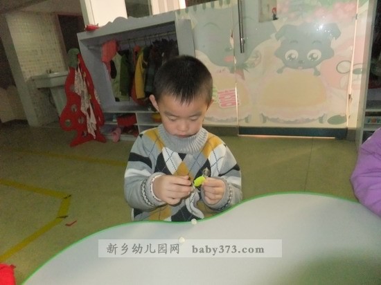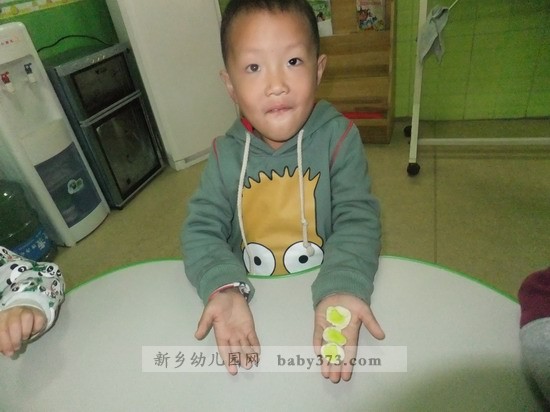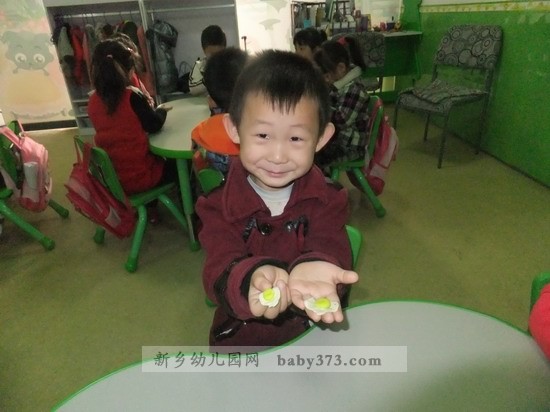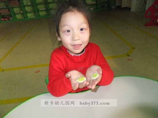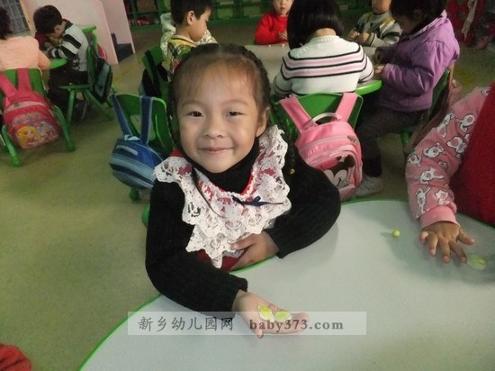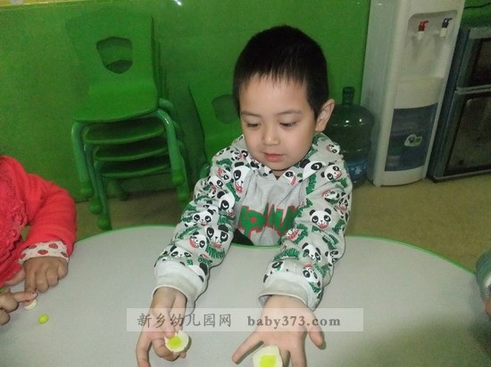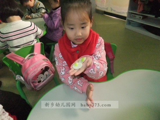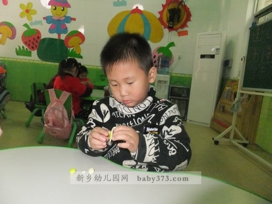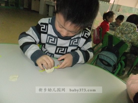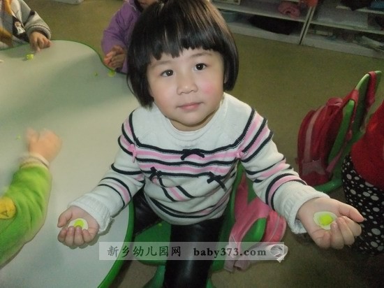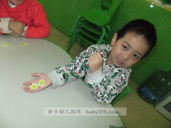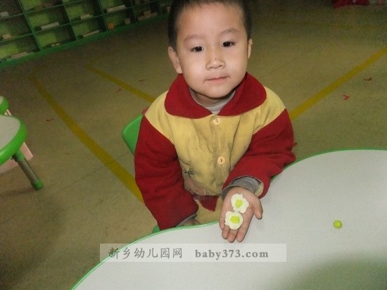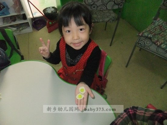 这是新乡市钓鱼台.爱贝尔幼儿园果果一班在做每周一次的手工课。 “现在我们在做荷包蛋,看我们自己做的荷包蛋像吗?”