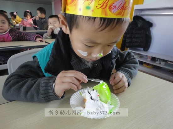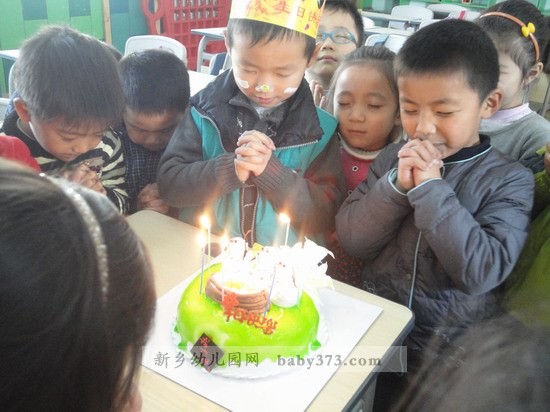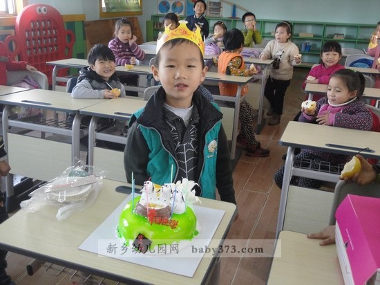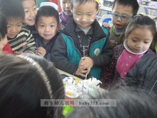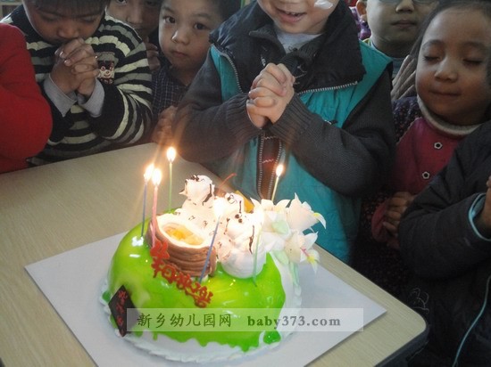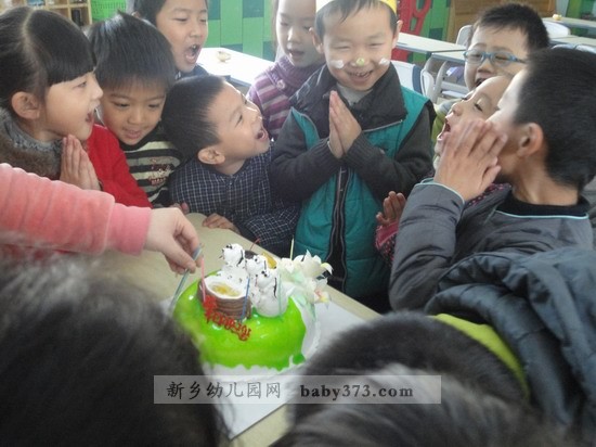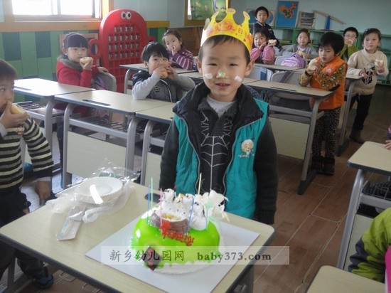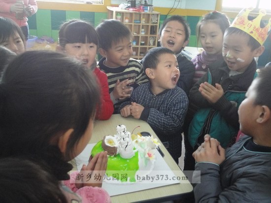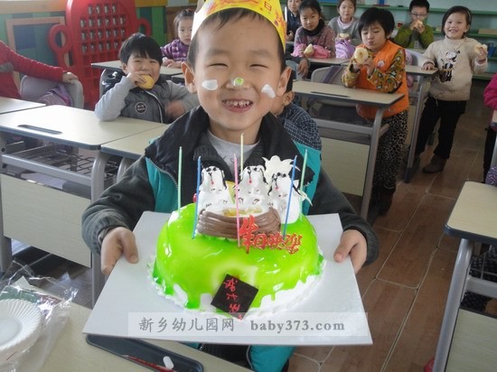 今天,是新乡市钓鱼台幼儿园学前一班仲维城小朋友的生日,他带来了蛋糕和幼儿园里的小伙伴们一块儿分享快乐! “瞧,我们点上了蜡烛,小伙伴们一起为他唱起了生日歌,真幸福呀!”