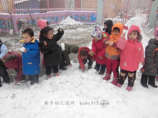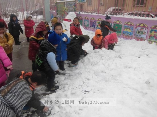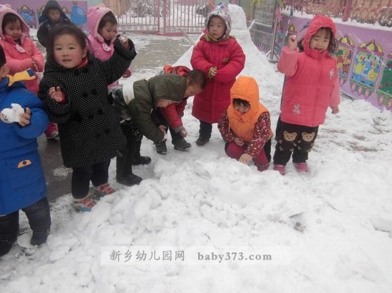 早晨,雪终于停了。新乡新机幼儿园勿忘我班的孩子们一个个都早早的来到幼儿园和老师一起打雪仗,堆雪人。玩的不亦乐乎!