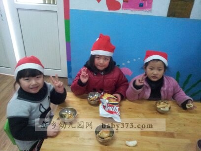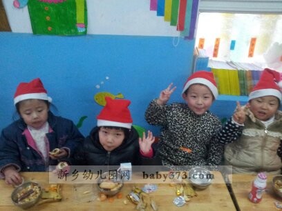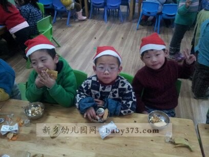 新乡新机幼儿园紫罗兰班的小朋友们今天都带着非常兴奋的表情来到了幼儿园,因为今天是圣诞节,下午老师要安排大家一起聚会。 “下午起床之后,老师给我们一个一个的带上了圣诞帽。聚会开始了,我们先一起唱歌,然后我们在一起跳舞,我们一起互相分享好吃的,我们在一起开心、无论时光怎样流逝,我们都依然记得这些欢乐的日子。”