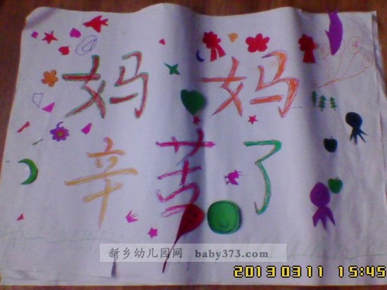 新乡新机幼儿园百合花班在3.8节的活动中分为五小组,各个小组任凭自己想象做出有关3.8相关的板报。 “我们的宝贝们和亲爱的家长们都很积极的动起手来,你看,我们的家长的想象也是很丰富的哦、我们小宝贝的小手也是开始忙碌起来。最终,我们家长的成品板报出来了,真是很棒哦! ”
