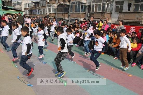其次是大、中、小班的孩子们表演跳绳操、皮球操…… 孩子们一个个都表现得十分认真,努力做到动作整齐,有力,很好的体现了团体协作精神。