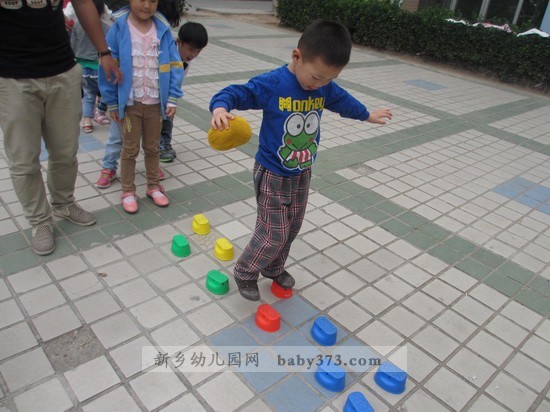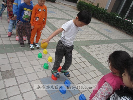 5月15日上午长垣教办室幼儿园分园中级班的孩子们和太阳老师一起玩了运炸弹的游戏。 “要想把炸弹安全的送到目的地,我们必须通过一个小桥,安全通过小桥有窍门哦,看我们谁的平衡力比较好,来瞧一瞧吧!”