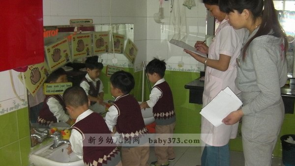 当前,正是“禽流感、手足口”病的高发季节。大家知道正确洗手是杜绝传染病传播的重要环节。新乡小哈佛建业幼儿园一贯注重幼儿良好卫生习惯的培养。2013年5月7日上午,新乡小哈佛建业幼儿园小班至大班的全体幼儿进行了一场洗手环节比赛。 让我们一睹他们在洗手比赛现场的风采吧!看看谁的小手洗的又干净,方法还又正确。