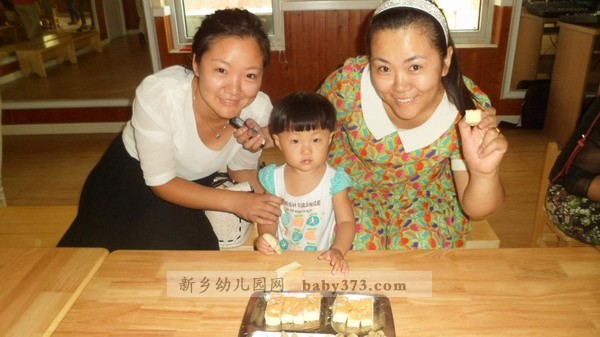 月饼做好之后,由各组的老师把孩子们做好的月饼送到厨房进行烤制。