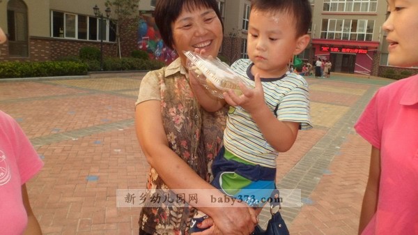 家长幼儿快乐离园,教师分发月饼糕点。
