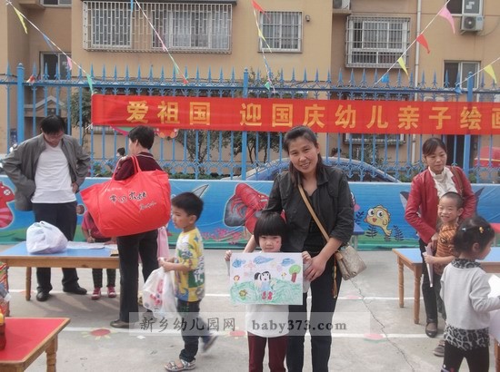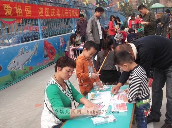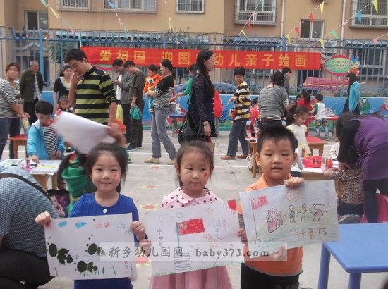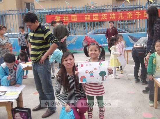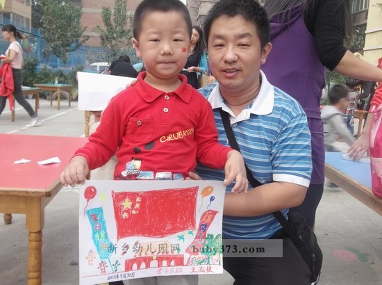 2013年9月30日上午9:30,新机幼儿园在国庆来临之际,在振奋人心的义勇军进行曲中迎来了幼儿“爱祖国 迎国庆”亲子绘画活动。孩子与爸爸妈妈唱起我们的国歌,共同祝愿我们伟大的祖国生日快乐。紧接着孩子们又和爸爸妈妈一起用灵巧的双手、发挥想象力、将满载的情感融入到一幅幅绘画作品中,描绘出对祖国妈妈的热爱之情。每幅画中都承载着孩子们对祖国妈妈的祝福!