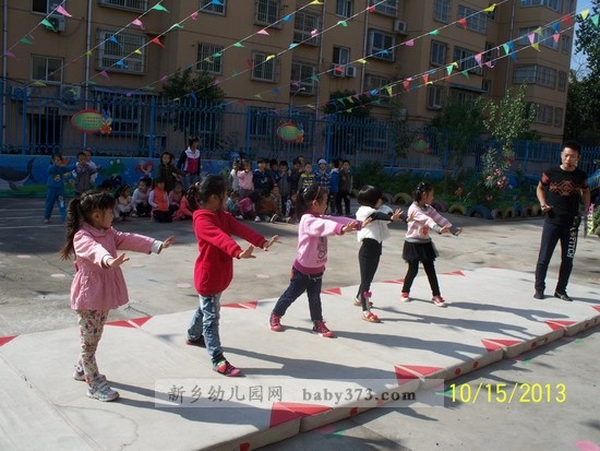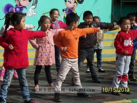 喔……噢……听说了吗?今天我们新乡新机幼儿园向日葵班要上武术课,大家都兴奋地像只小猴子一样,在老师前面连蹦带跳的拉着老师的衣服直问,老师老师……我们什么时候开始学习武术,我们都等不及了。啊啊啊!这不是教我们武术的张教练来了吗。看,下面我们正在聚精会神的学习很厉害的武术课!呦……呵……