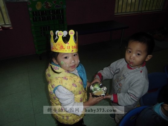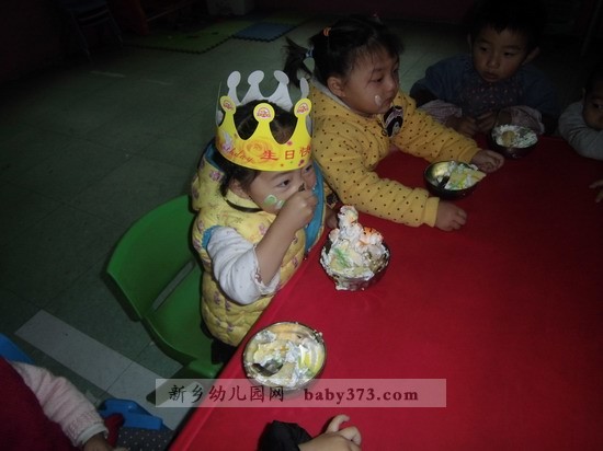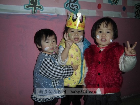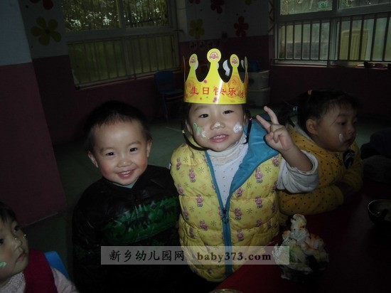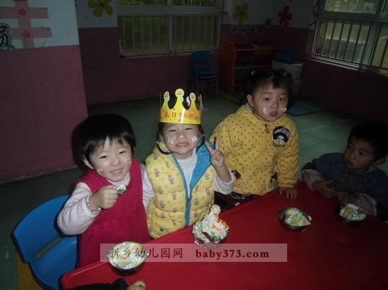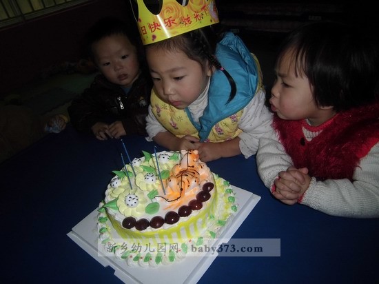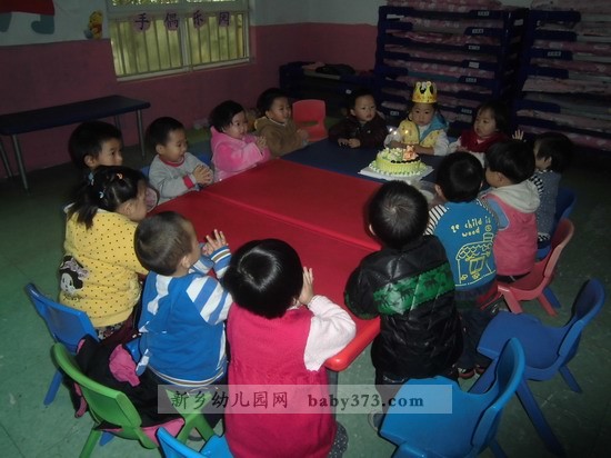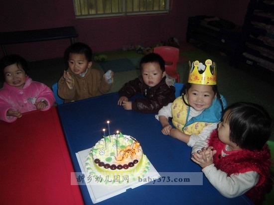 “11月份新乡新机幼儿园郁金香班的玉冰小朋友过生日。” “今天她非常的开心,这是她第一次在幼儿园和小朋友一起过生日,孩子们脸上都露出了开心的笑容。” “今天她带来了一个生日蛋糕,和小朋友一起分享。” “希望在生日中她找到和小朋友在一起过生日的快乐,同时也让他初步懂得和人一起分享食物的快乐,愿她能够健康快乐每一天!”