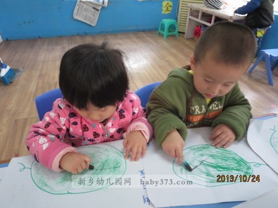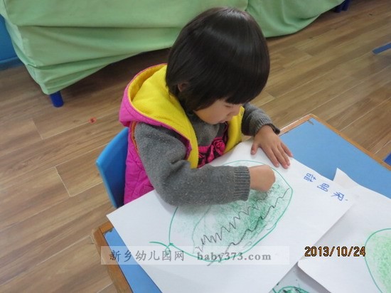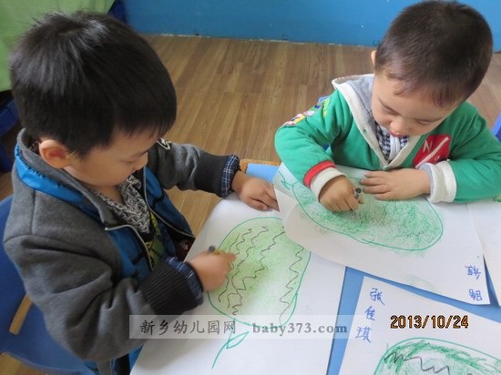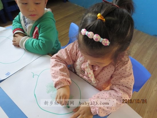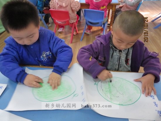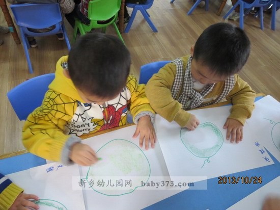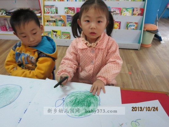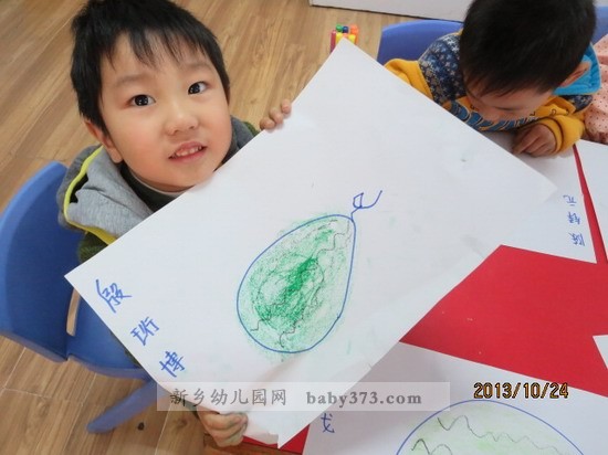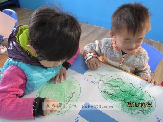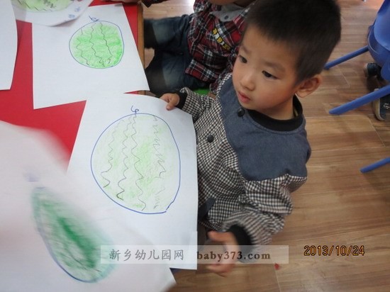 今天在认识不同种类的水果之后,老师给我们做了一个简单的统计。发现我们班小朋友绝大多数都喜欢吃西瓜。所以我们决定今天来画大西瓜。看,这是我们画的大西瓜。你们喜欢么!