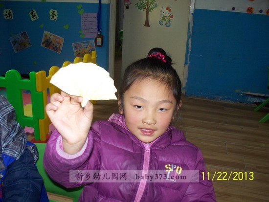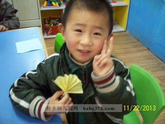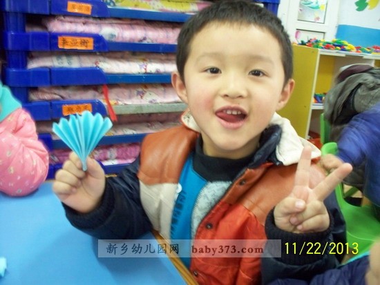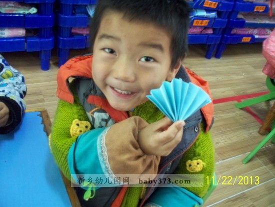 今天我们新乡新机幼儿园君子兰班上手工课了,我最喜欢上手工课了. 今天学的是小扇子.看漂亮吧,等到下年夏天的时候,我要折一个更大的,送给爸爸妈妈.那样他们就不怕热了.