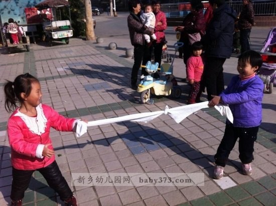 这是我们教办室幼儿园分园中级2班的小朋友在和毛巾游戏,他们一个个脸上都充满了笑容。