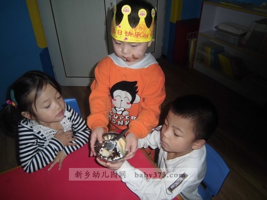 Hello,大家好。我叫小犇。今天是我的四岁生日,这是我第一次在幼儿园里过生日。我特别的开心。因为我想与小朋友一起跟我分享这份快了。小朋友还给我唱了生日歌呢。我还许下了一个愿望,希望我们班的小朋友永远在一起。下面,准备发蛋糕喽!