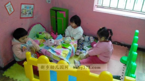 我们最喜欢在娃娃家里边玩了,因为我们可以玩过家家,给娃娃盖被子,哄一哄娃娃睡觉,还可以喂娃娃吃饭,我们在幼儿园里玩的可开心了!