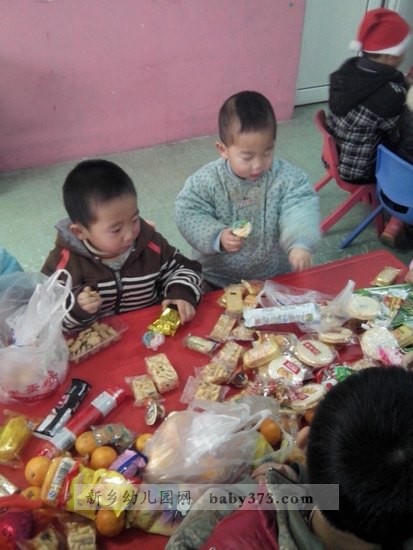 圣诞节的来临,给孩子们带来了节日的欢喜,我们在12月24日下午举行了圣诞联欢会,我们的班级也充满了圣诞的喜悦,家长也积极给孩子准备圣诞的小礼品,有:圣诞老人,礼物盒,手工折纸等;孩子们也带来了自己喜欢吃的食物,一起分享给小朋友,小朋友和老师一起度过了一个欢快的圣诞节。