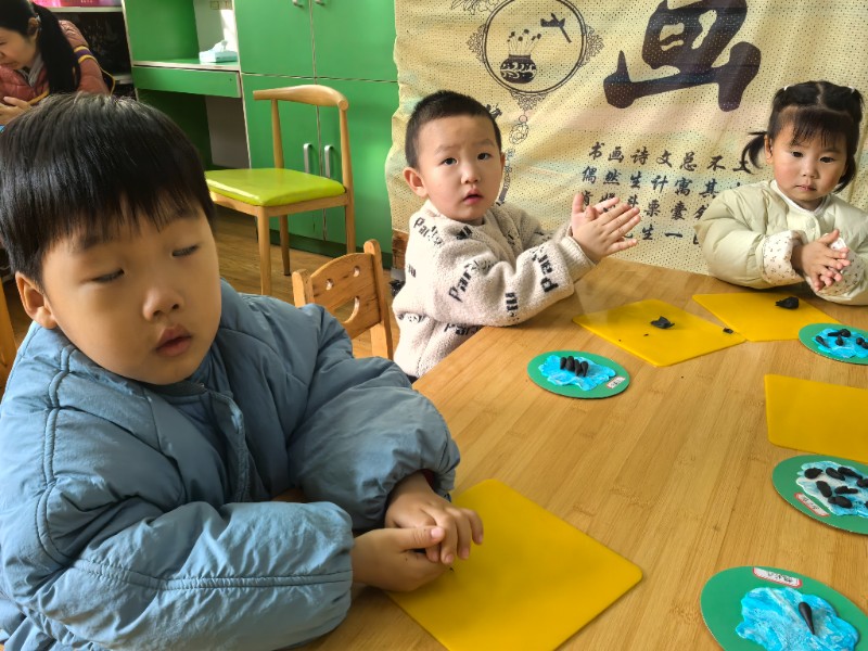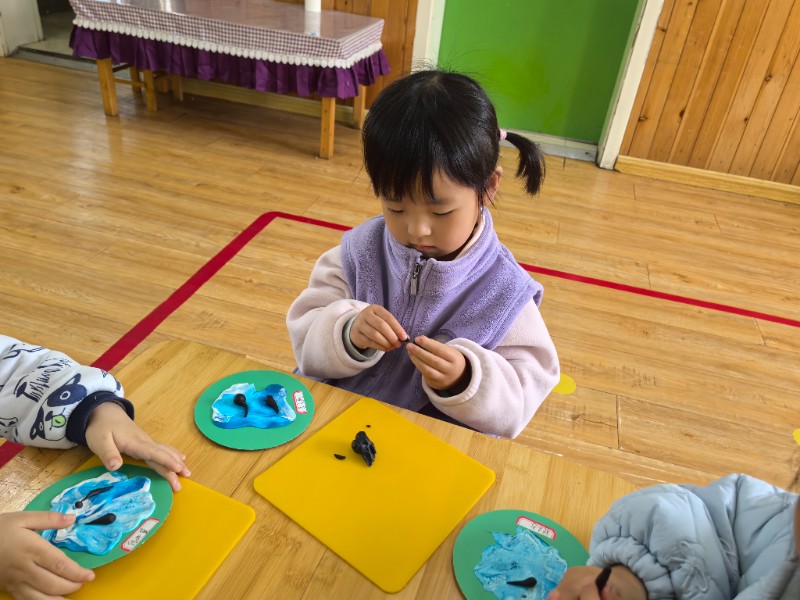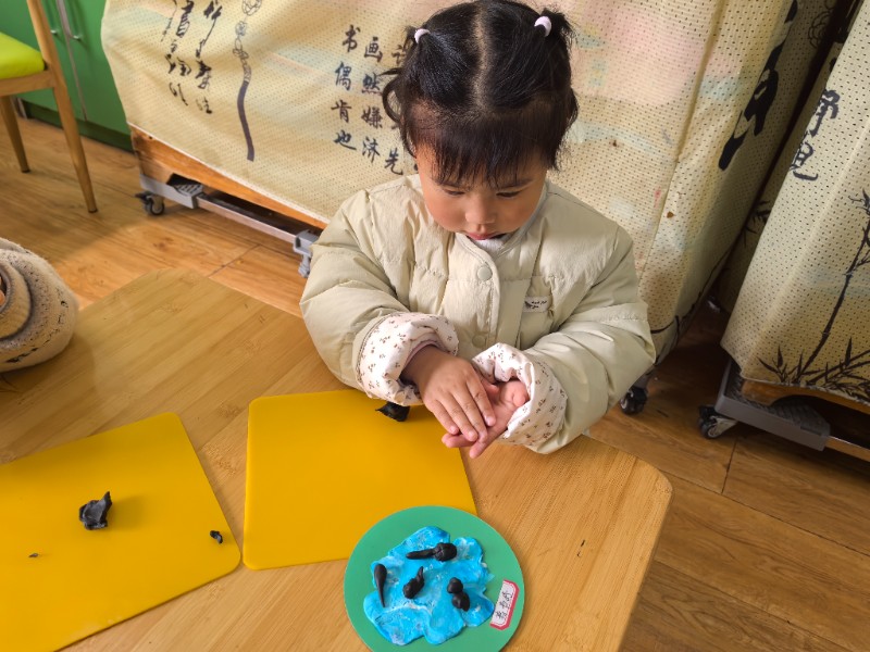 今天老师带我们一起去制作了面塑活动《小蝌蚪找妈妈》,快来看看我们的作品吧。是不是很棒呢!