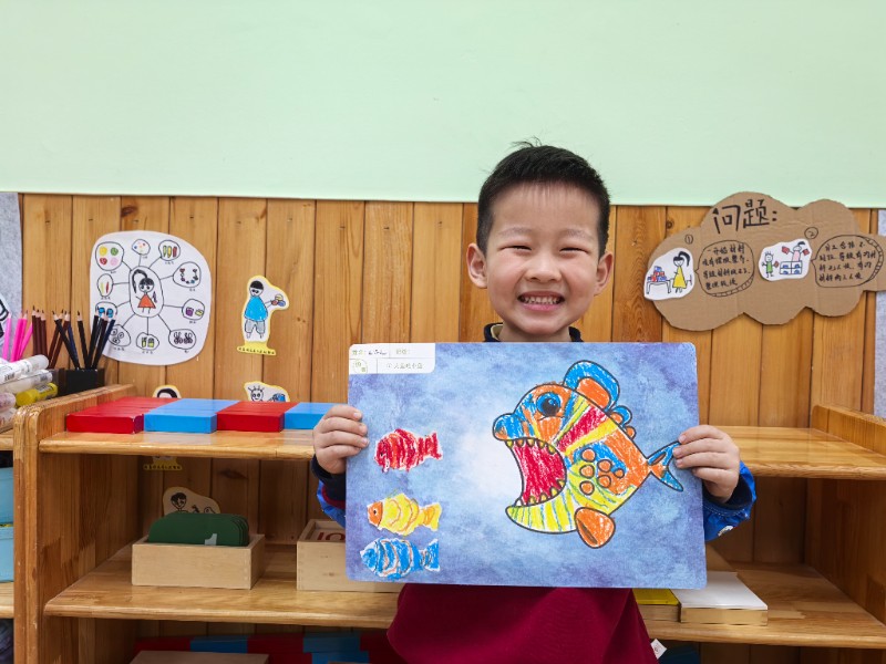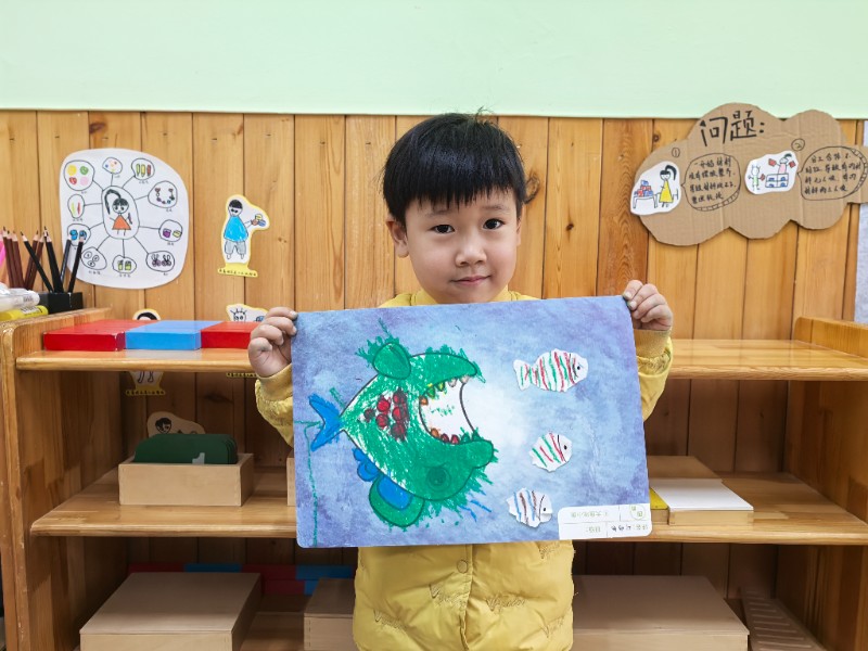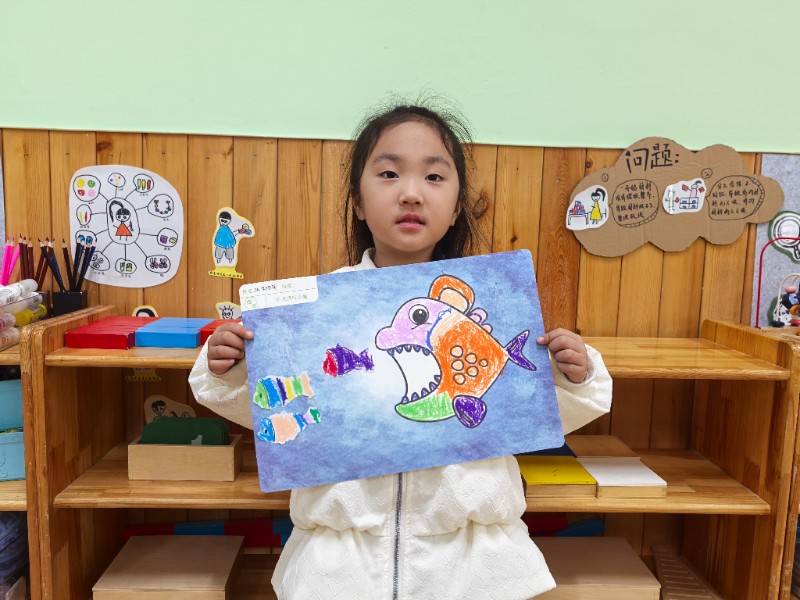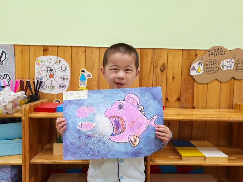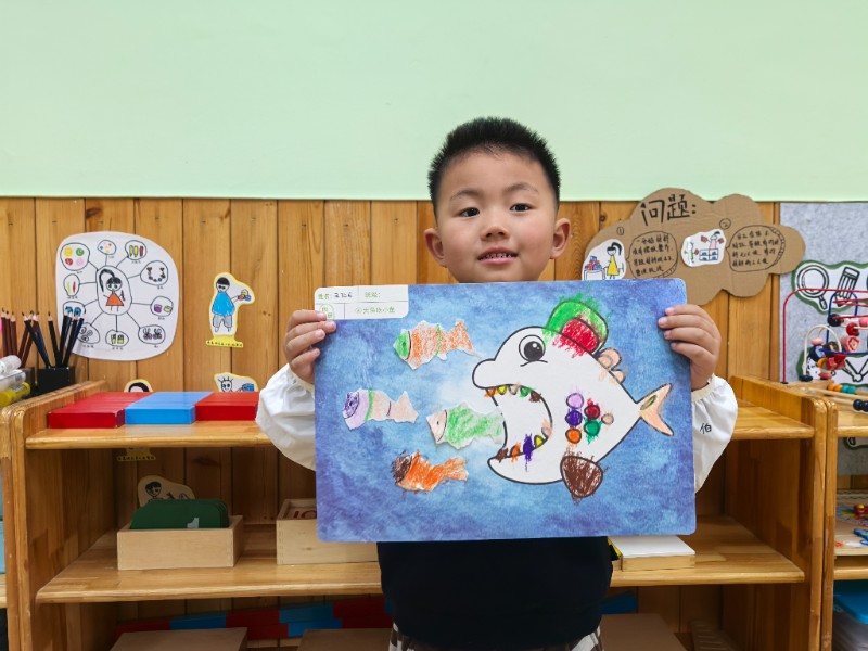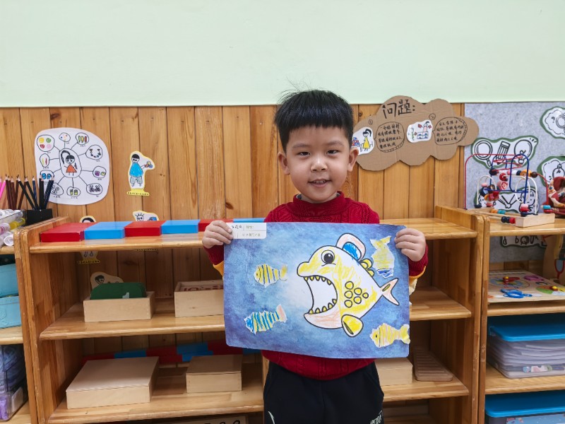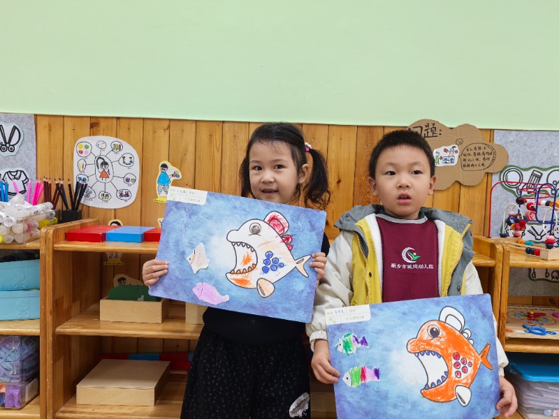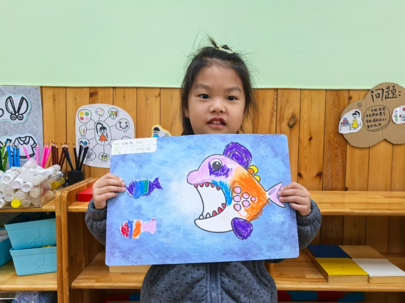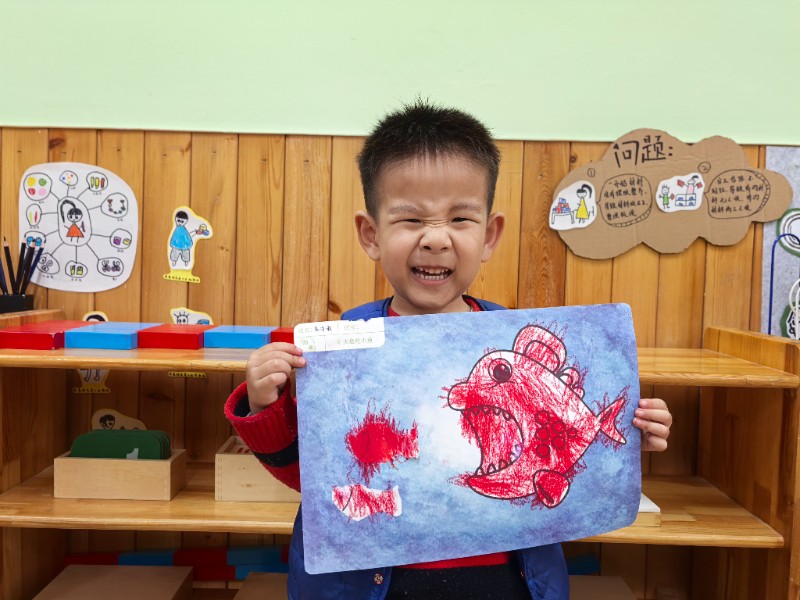 今日美术活动——大鱼吃小鱼。一张普普通通的白纸,在孩子们的创意下经过撕、粘、添画等方法后变成了一只只可爱的小鱼。孩子们的智慧在手指尖上凸显出来,既新颖别致,又能锻炼手指肌肉的灵活性。