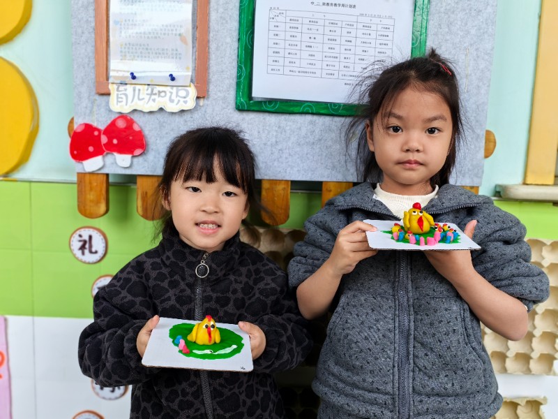 可爱的鸡宝宝在小朋友手里活灵活现