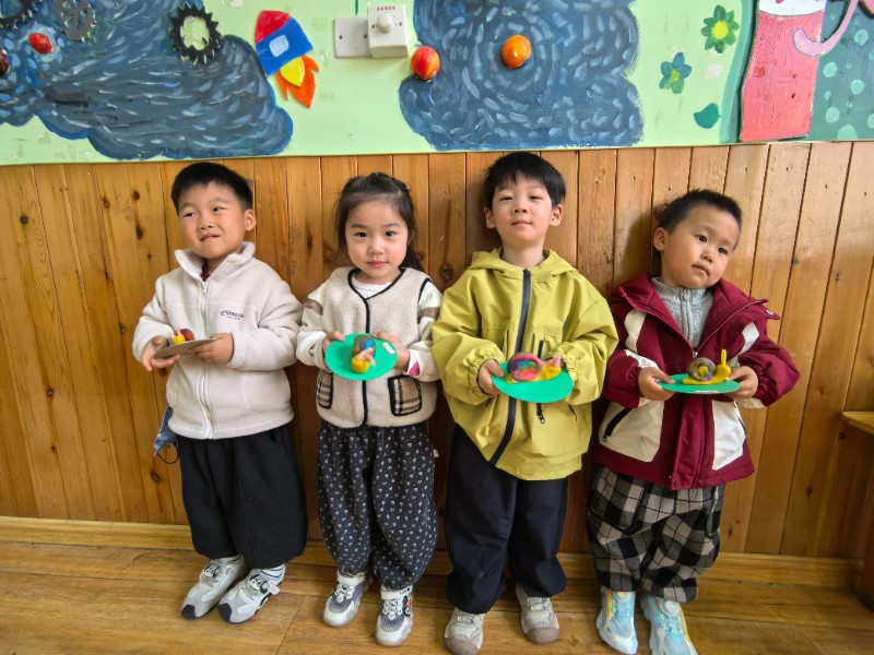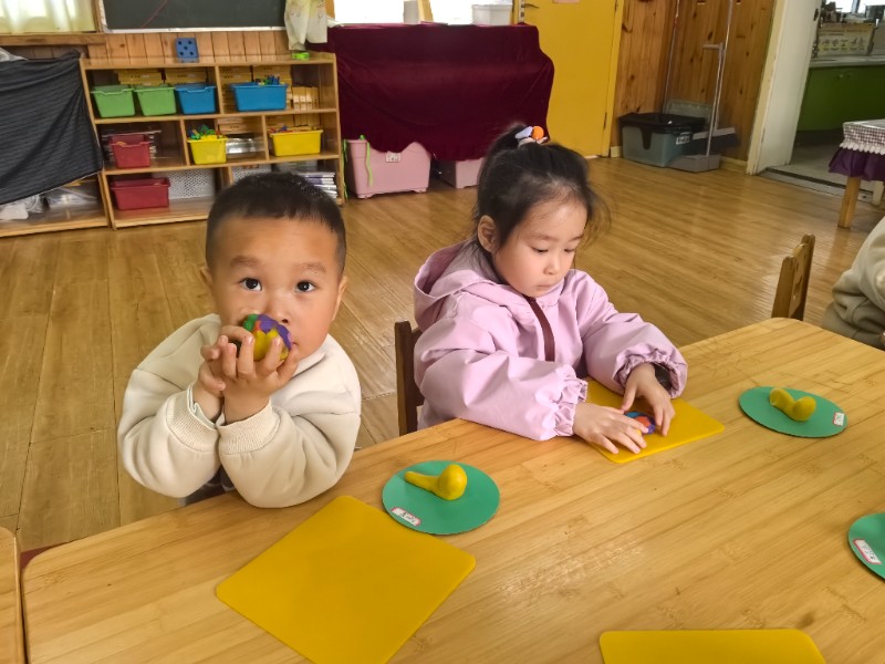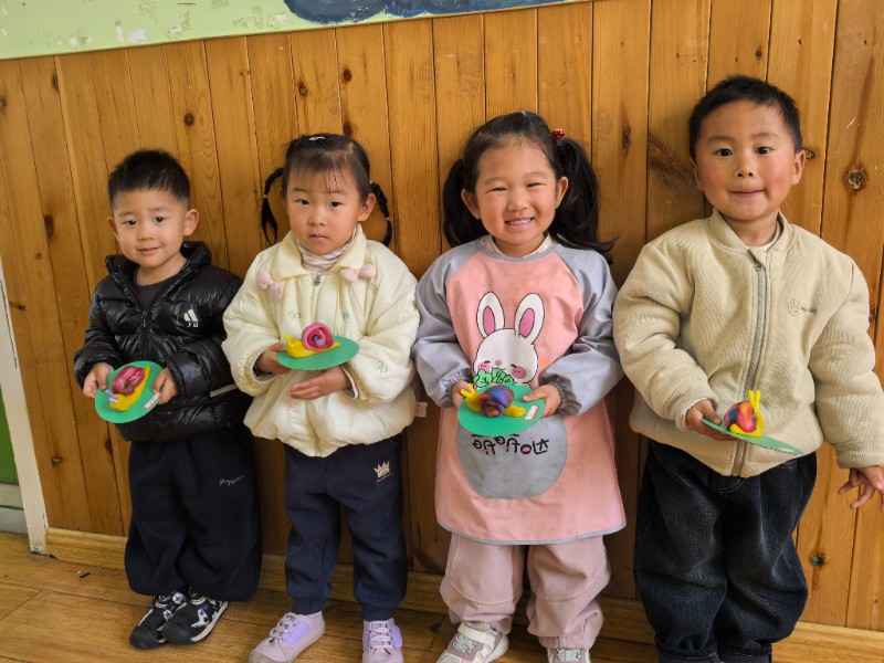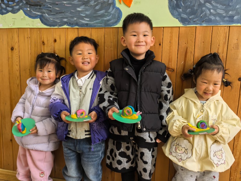今天老师带我们一起去制作了面塑活动《小蜗牛》,爸爸、妈妈快来看看可爱的小蜗牛吧!