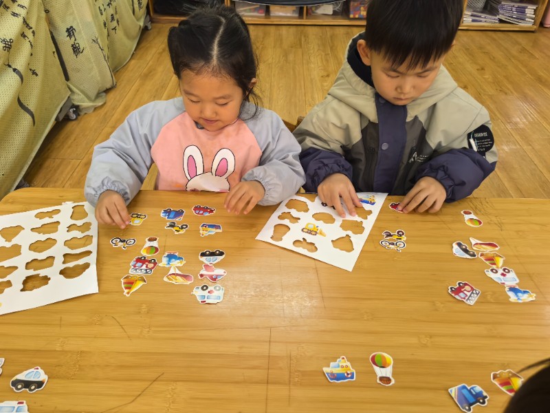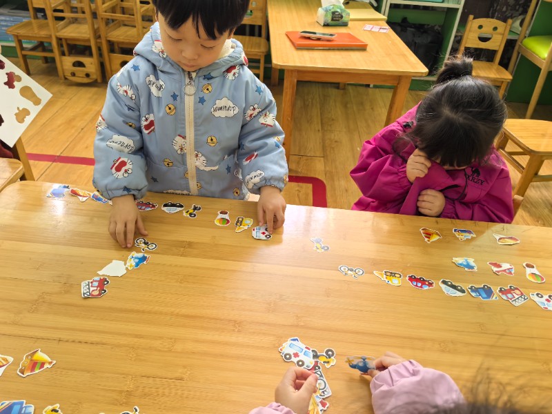 今天老师带我们一起去进行了全景游戏《交通工具》,天上飞的,地上跑的,我们都会分类呢,我们是不是很棒呢!