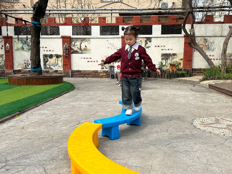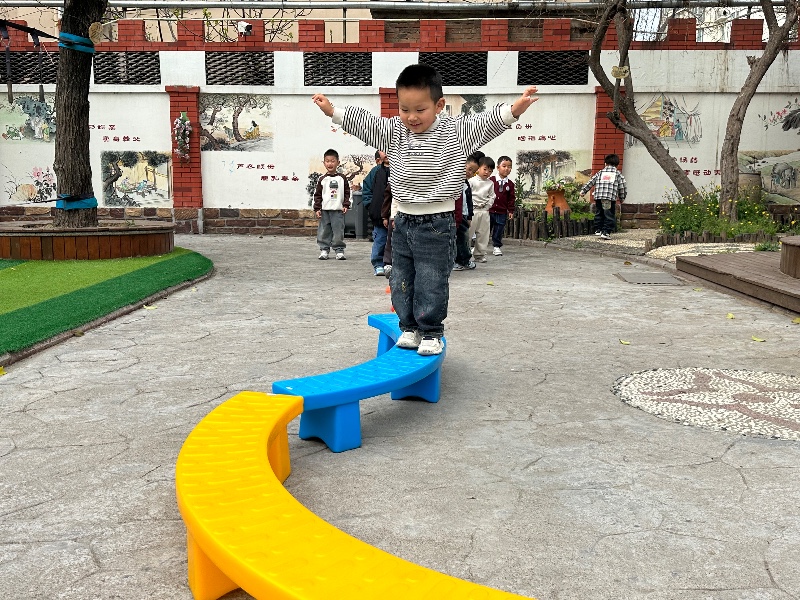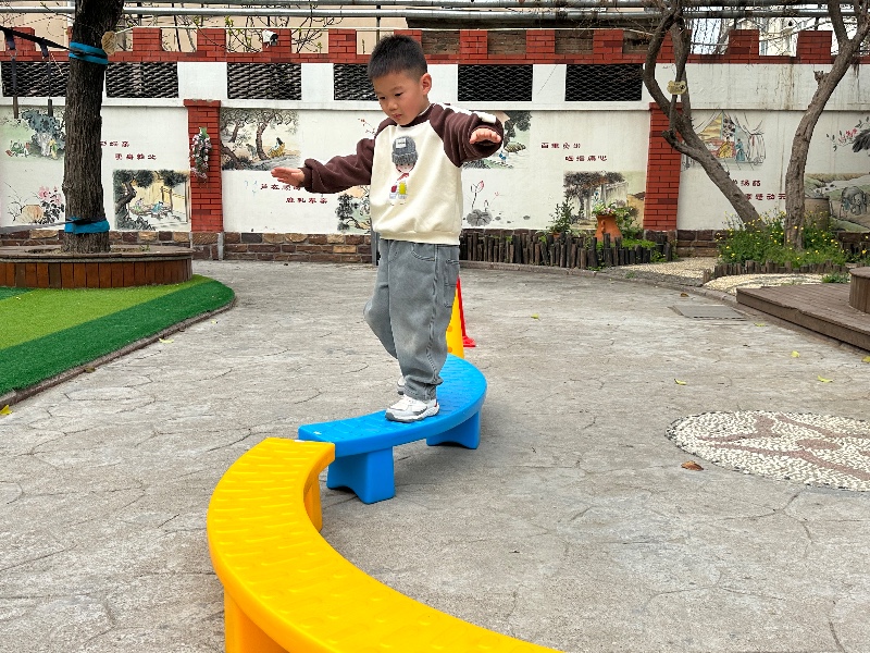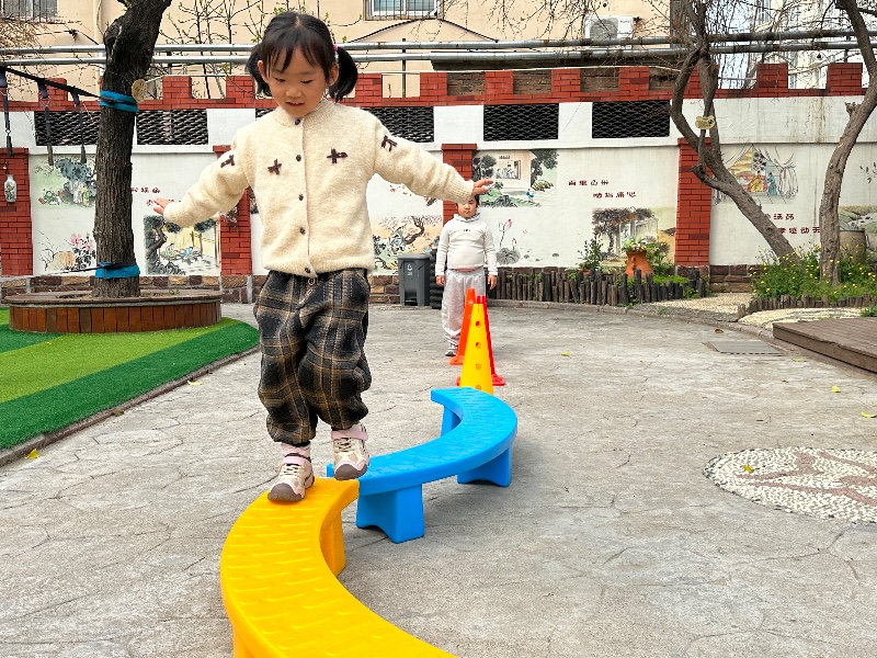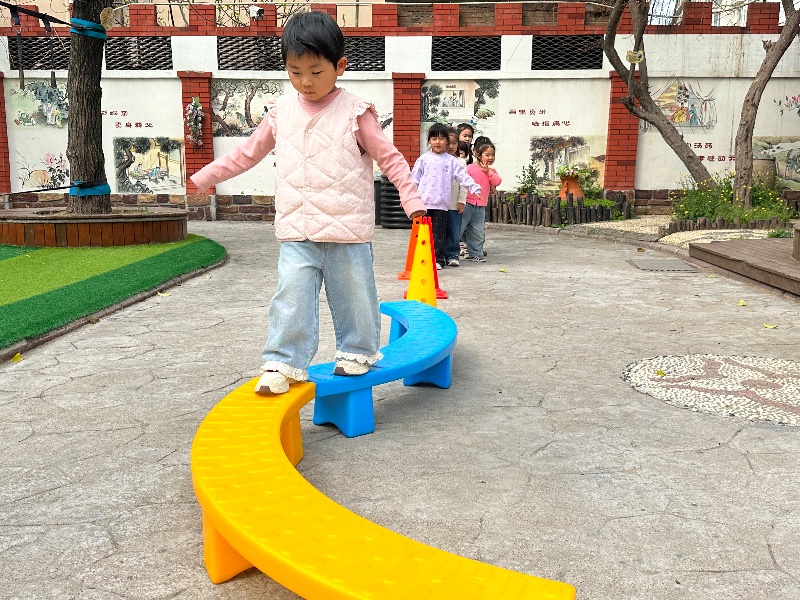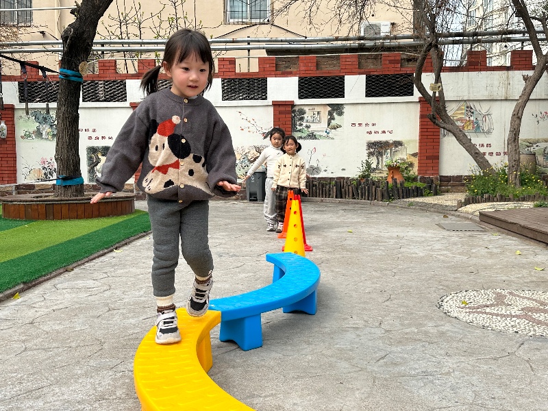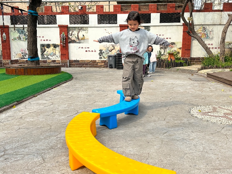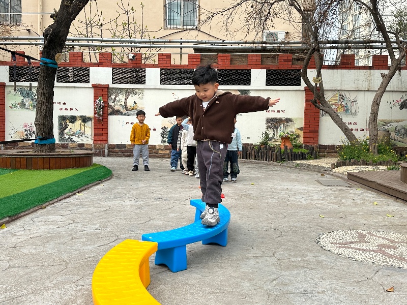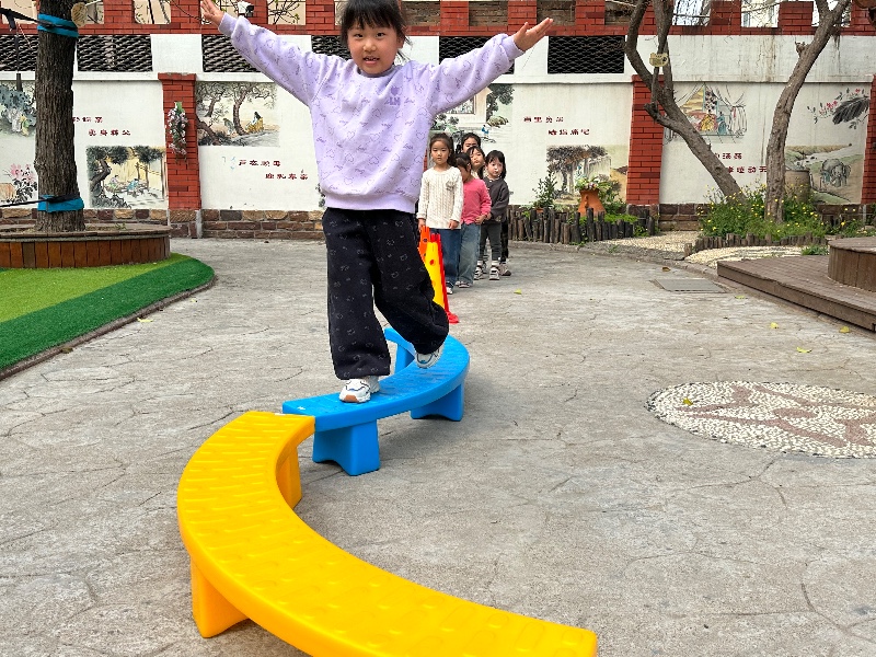 张开你的小手臂,像小飞机一样慢慢向前走,让小脚丫稳稳踩在平衡木上,我们一起感受身体的平衡魔法吧 ✈️