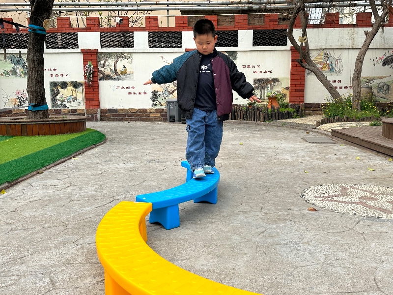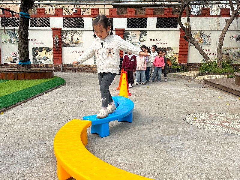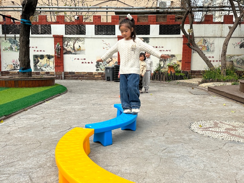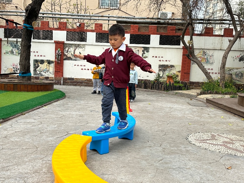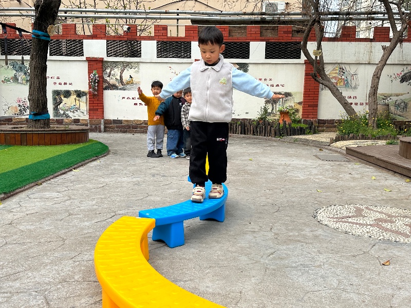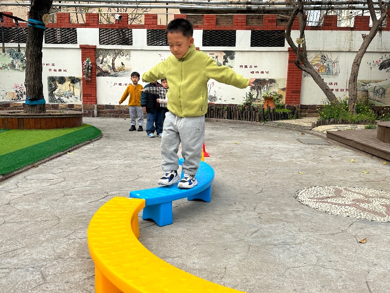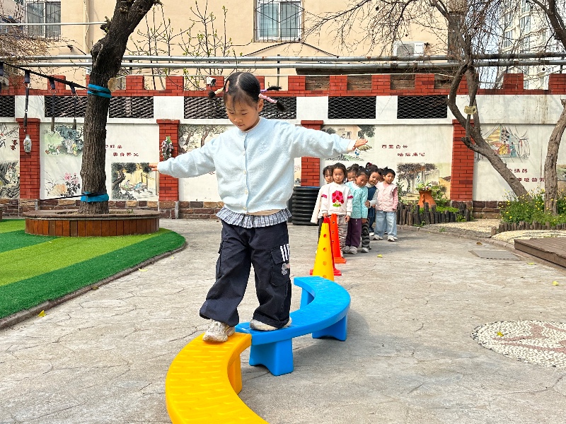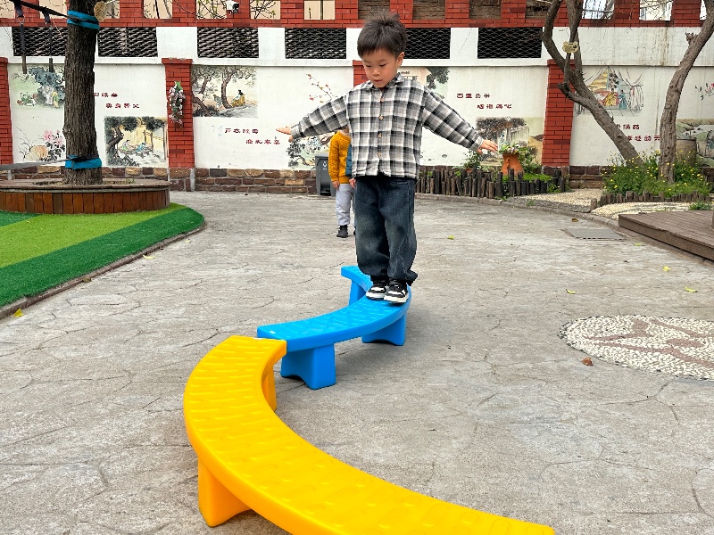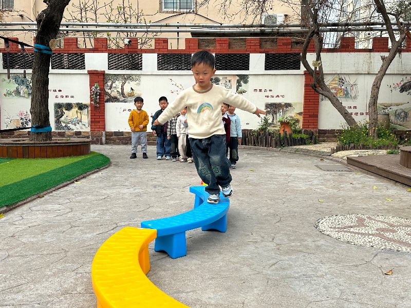 张开你的小手臂,像小飞机一样慢慢向前走,让小脚丫稳稳踩在平衡木上,我们一起感受身体的平衡魔法吧 ✈️