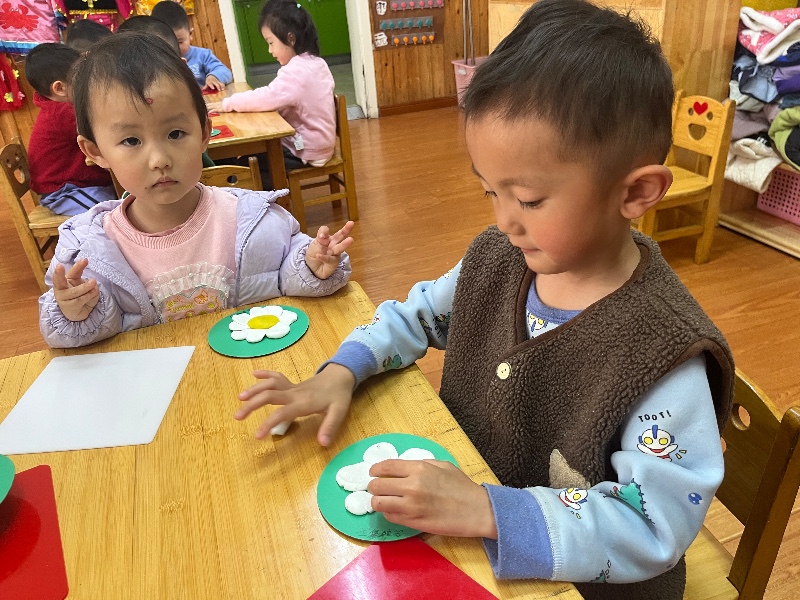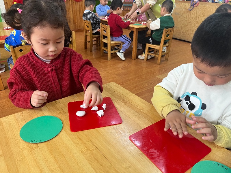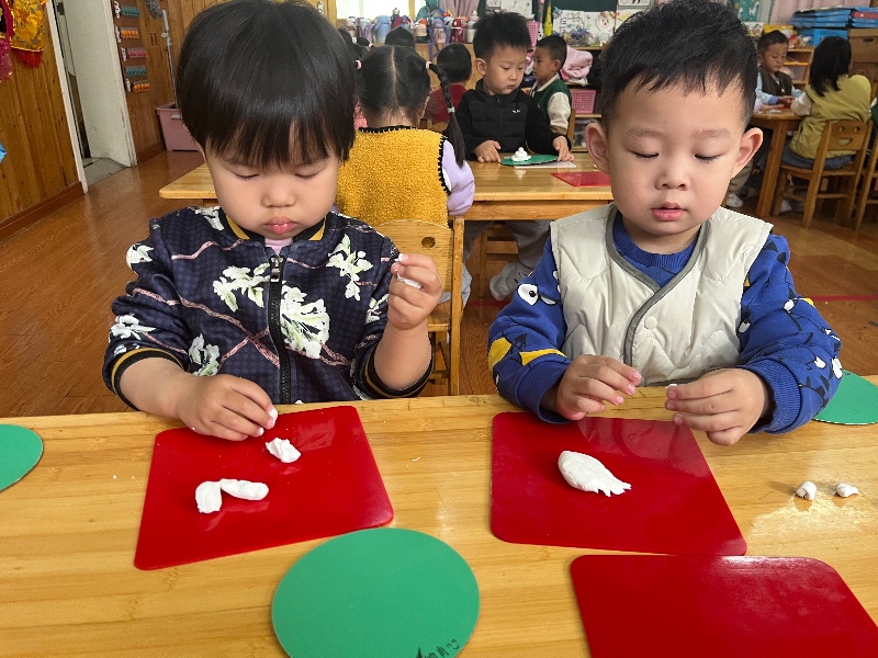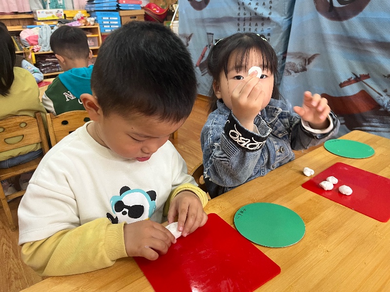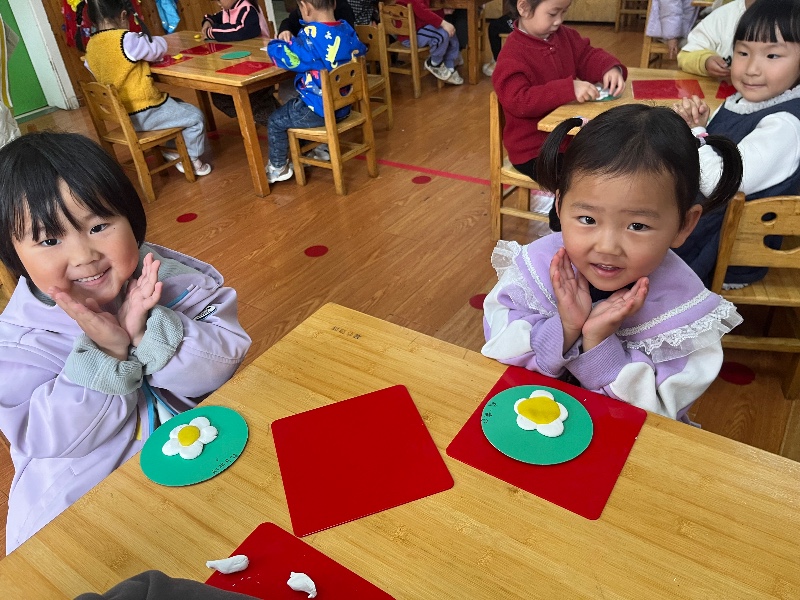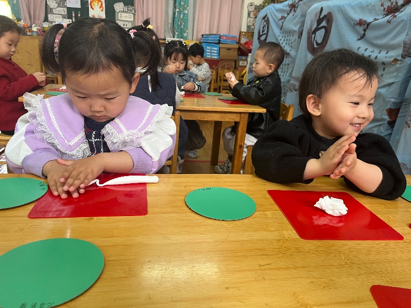 今天孩子们在幼儿园进行了面塑活动《笑起来真好看》。活动中复习团圆、侧搓水滴的技能 ,认识和学习使用工具刀。在日常生活中,家长也可以给孩子买一些超轻粘土,让孩子在家动手制作在幼儿园学过的面塑作品,可以增强孩子的动手能力。