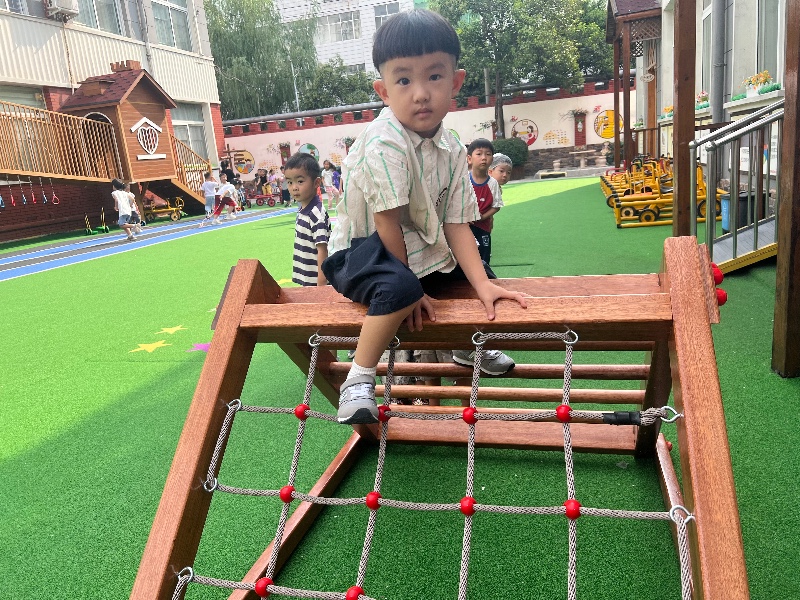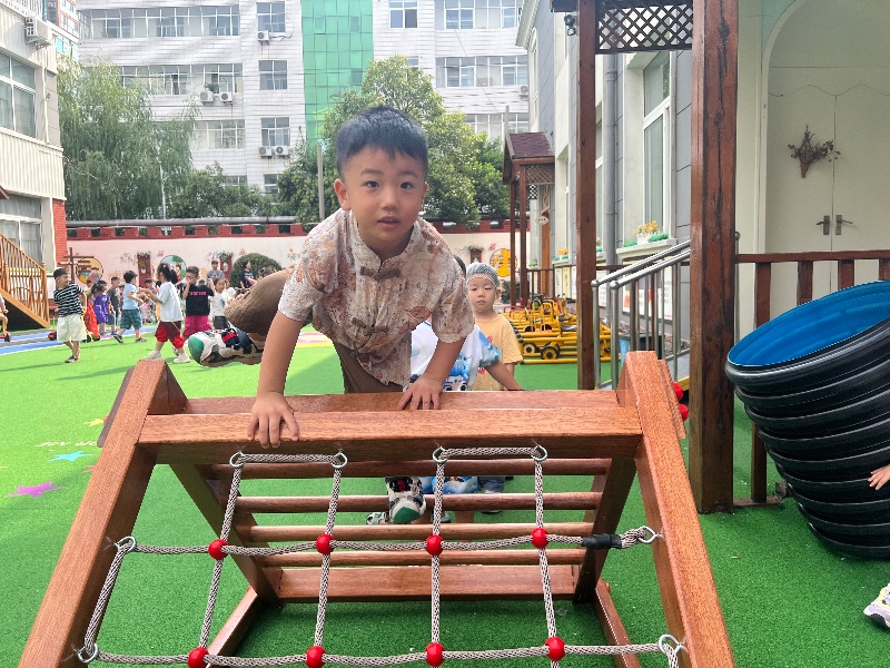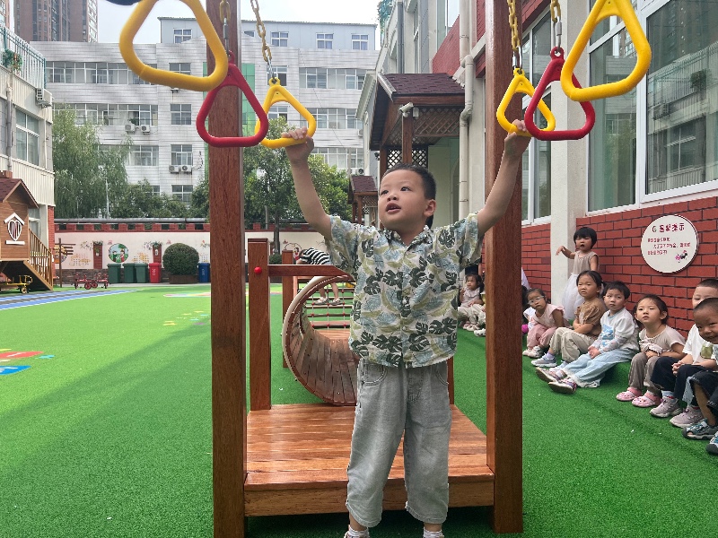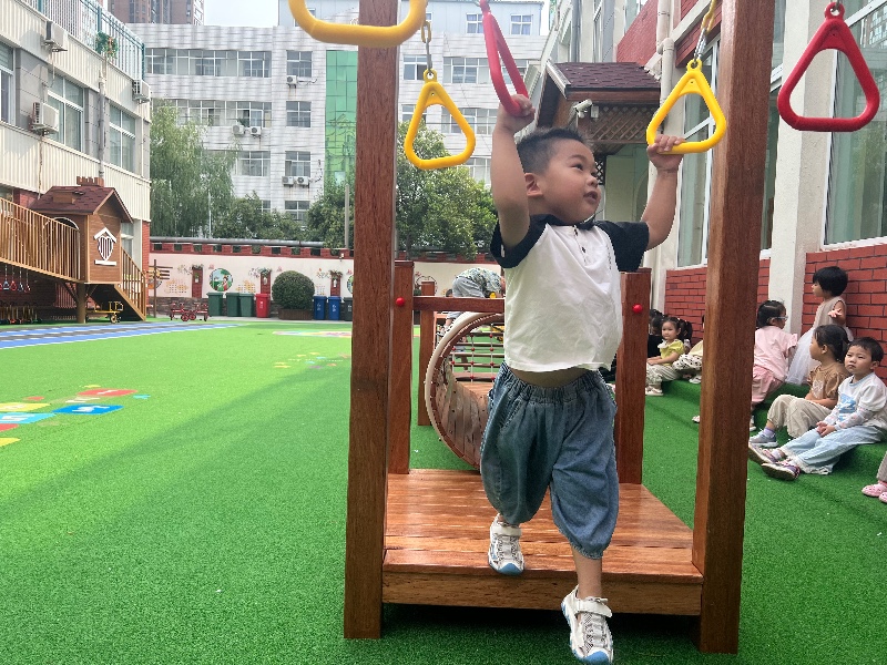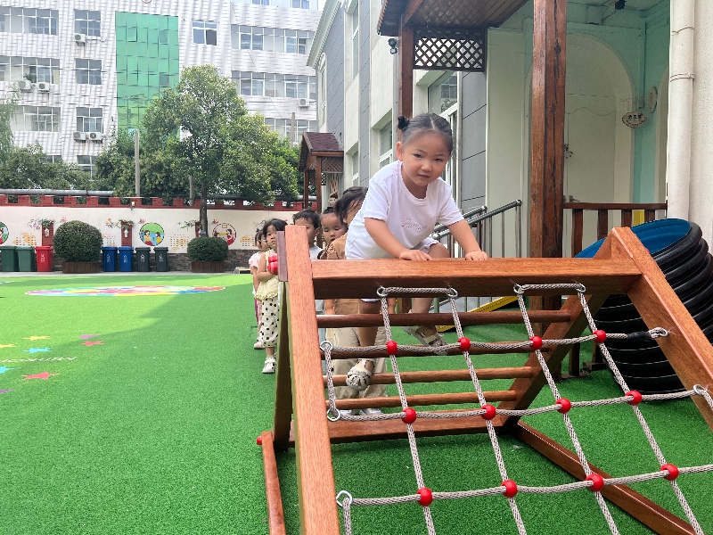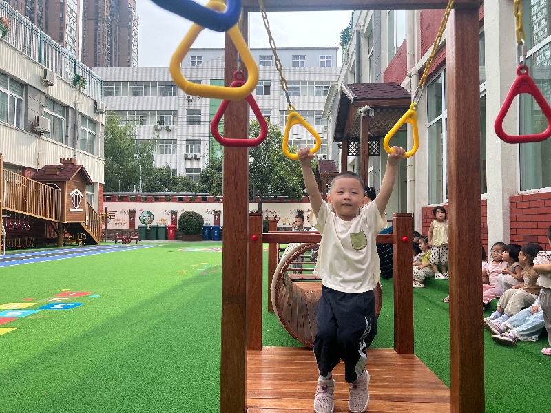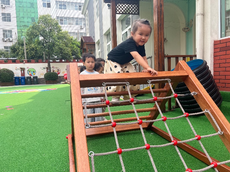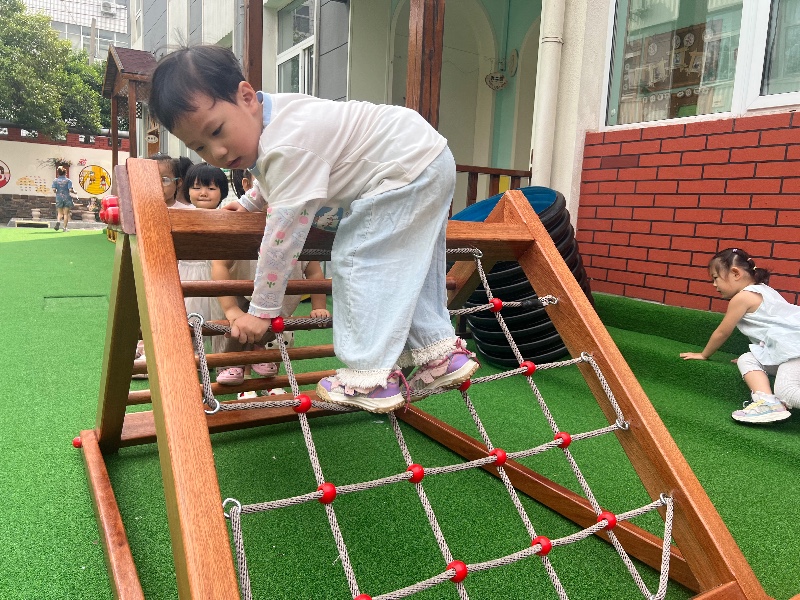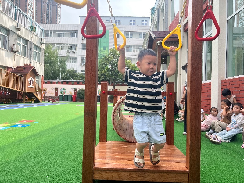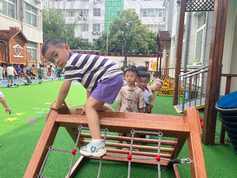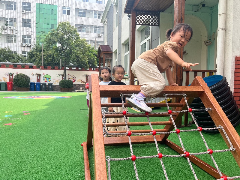 幼儿园来了新玩具,很有挑战性,宝贝们都很勇敢!