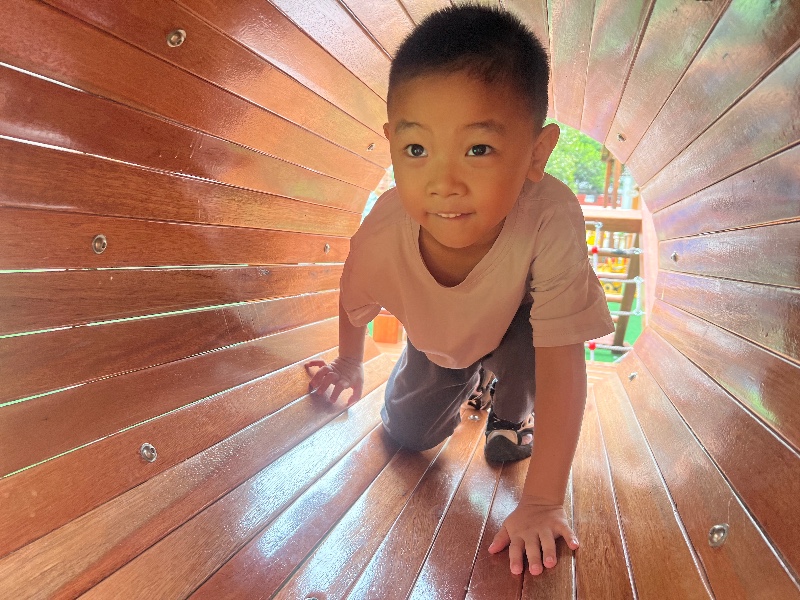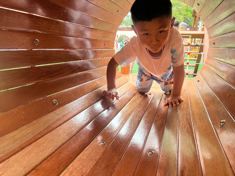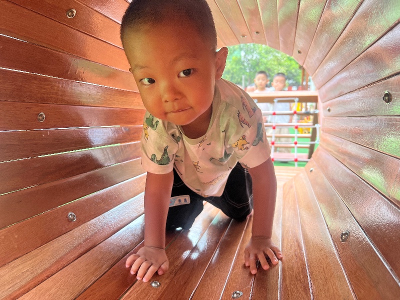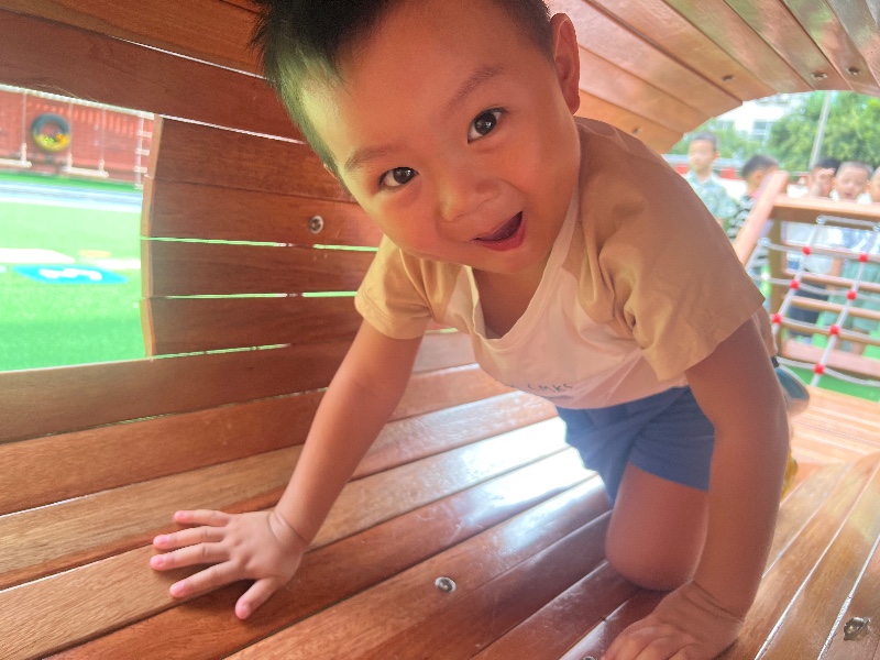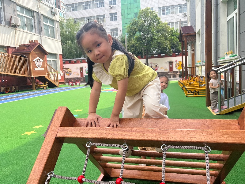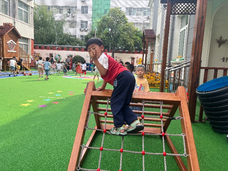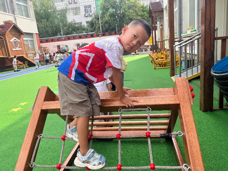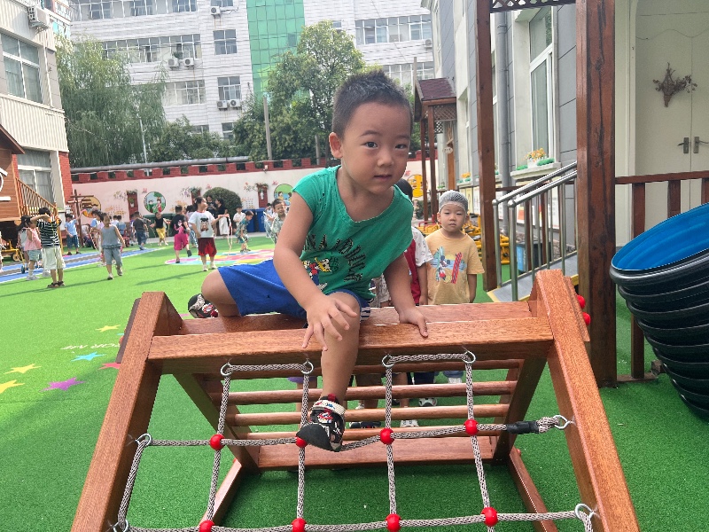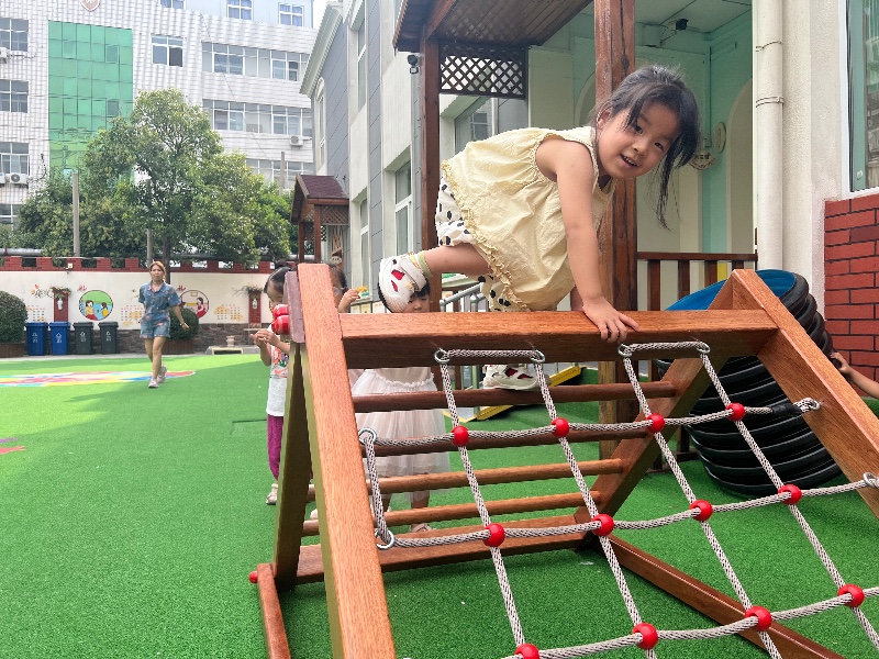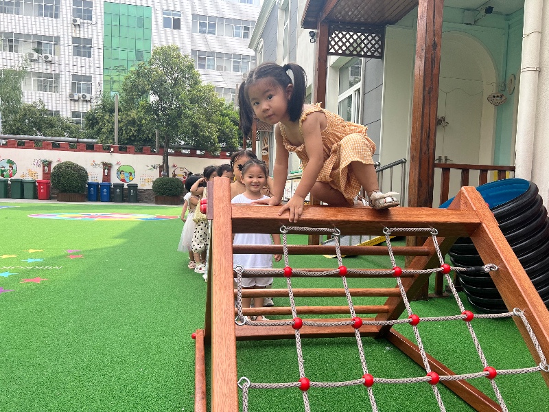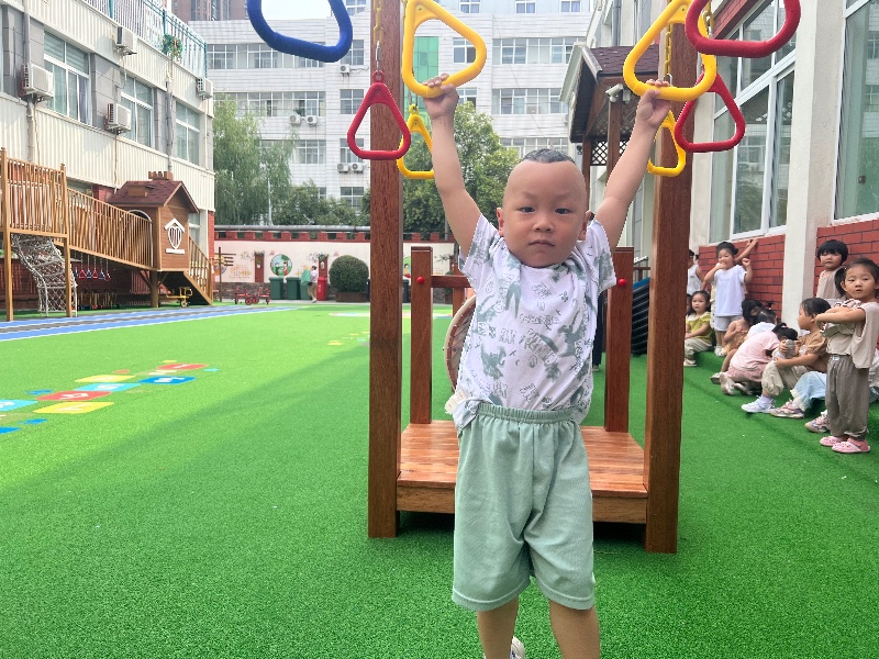 幼儿园来了新玩具,很有挑战性,宝贝们都很勇敢!