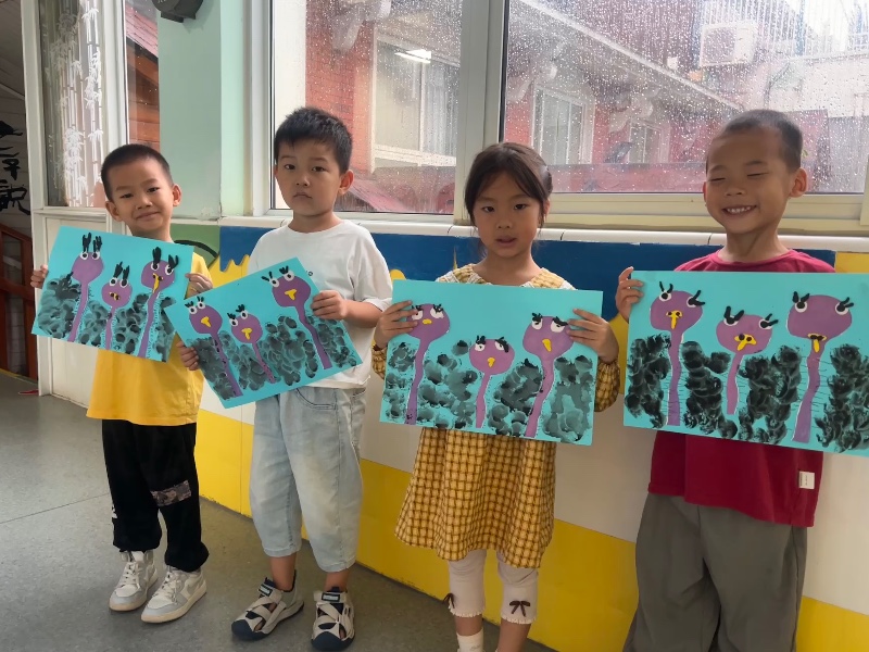 美术活动《幸福的鸵鸟一家》:新乡市城建幼儿园大五班