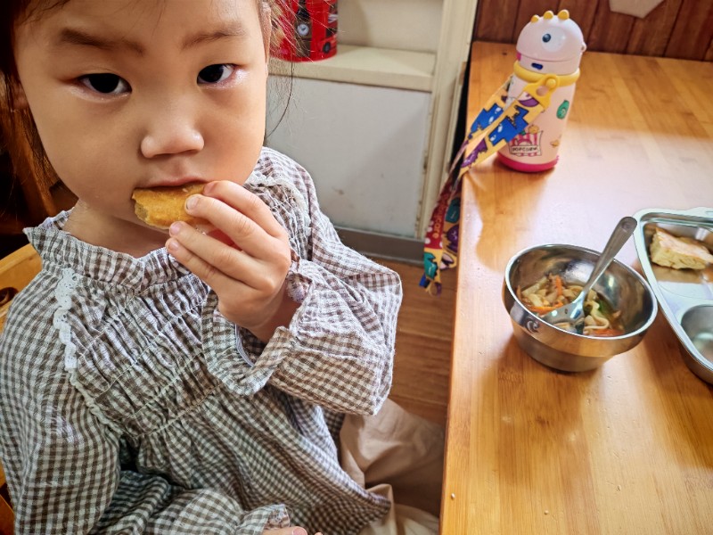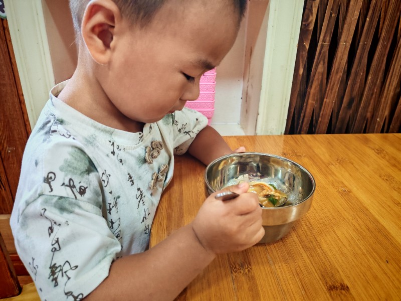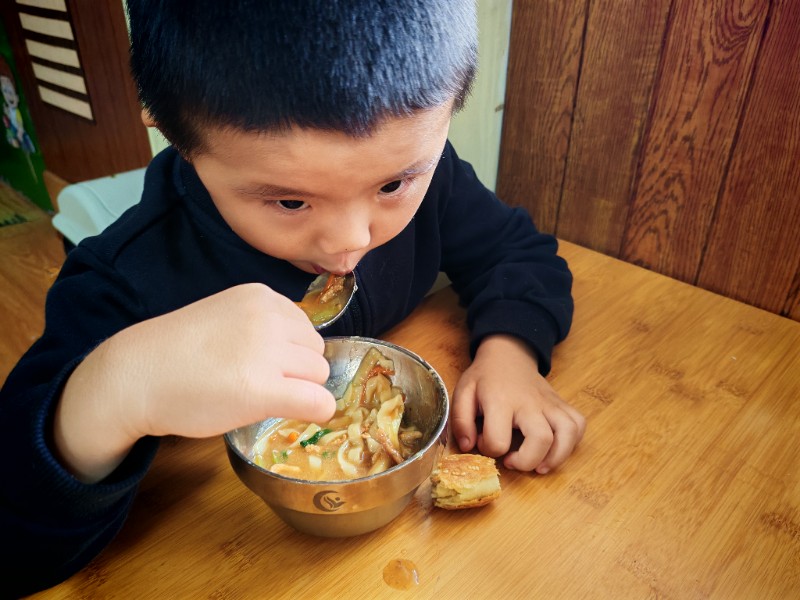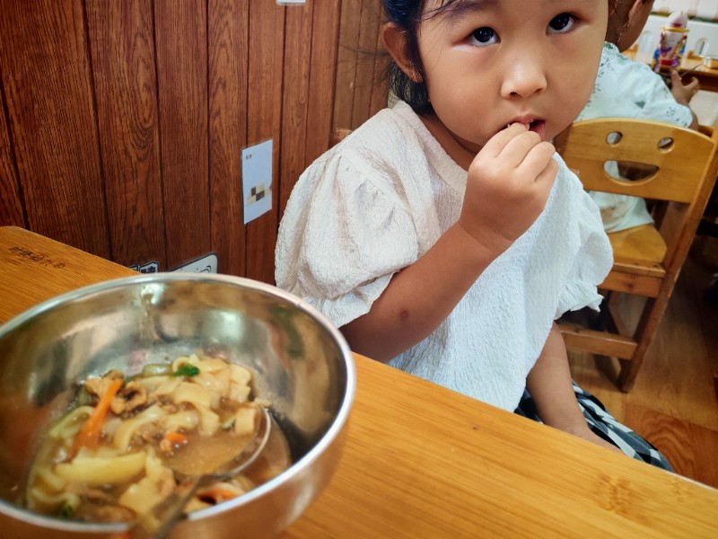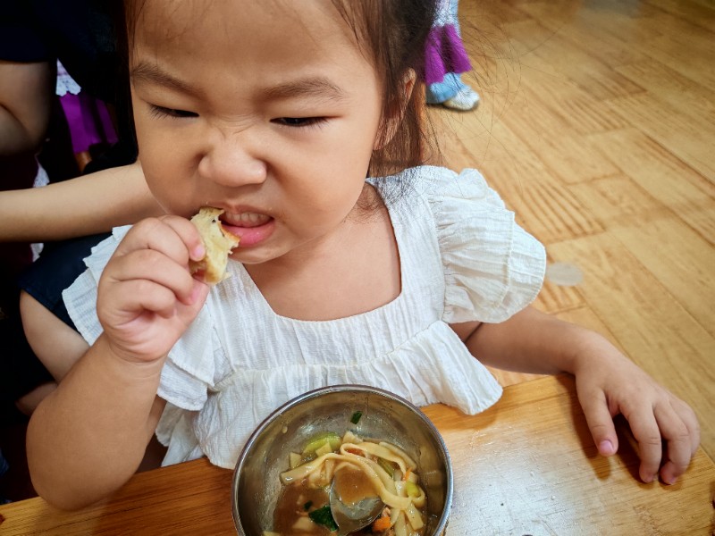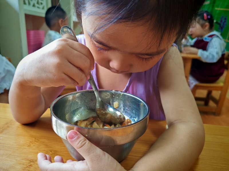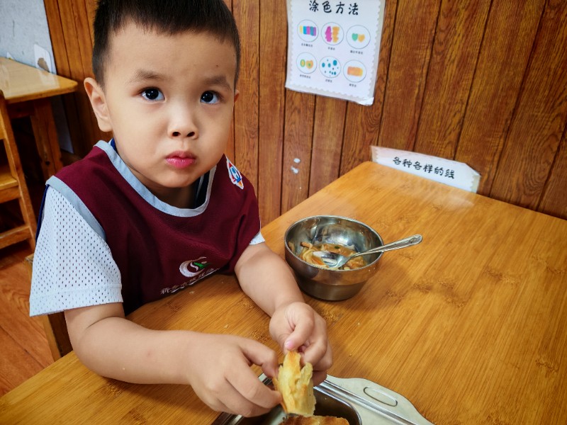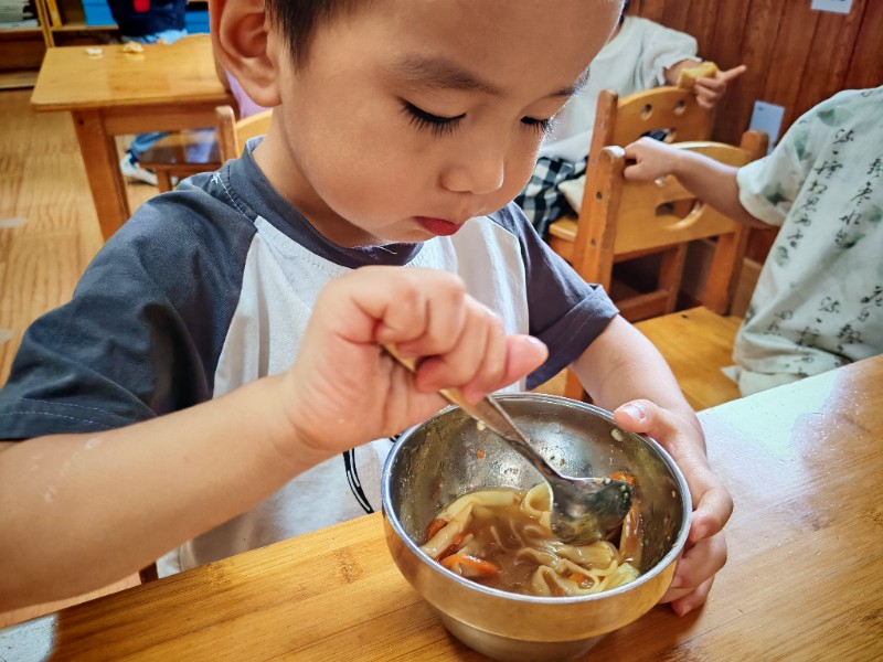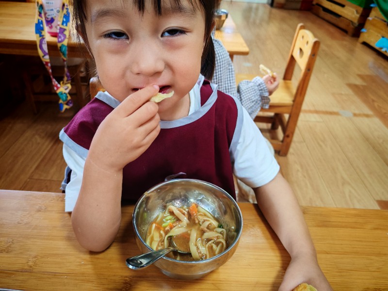 香喷喷的肉丝面,有红萝卜有青菜还有肉丝,有的说不吃肉有的说不爱吃青菜🥬🥬🥬,老师一遍一遍的讲蔬菜的营养价值(皮肤白白个子高高)哈哈!最后碗光光啦!