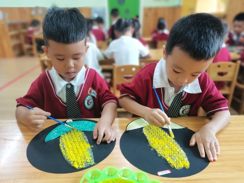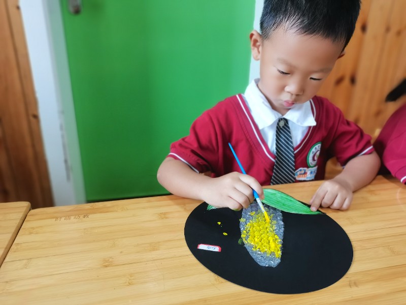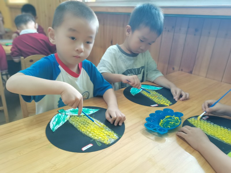 秋天是丰收的季节,让我们一起欣赏小朋友们的美术作品——玉米熟了!
