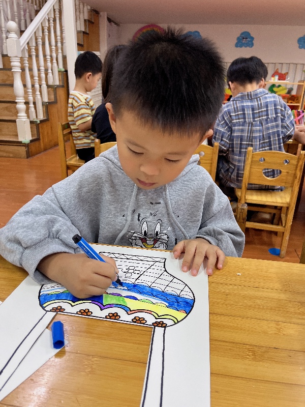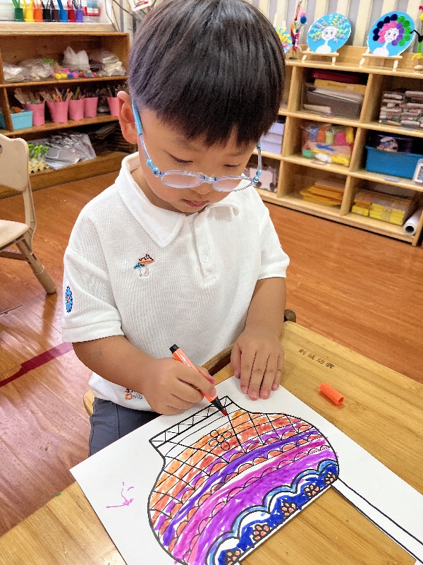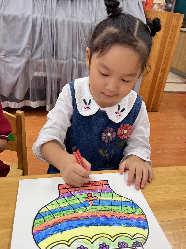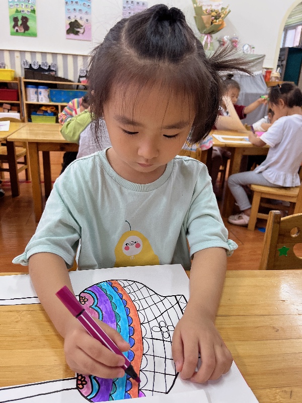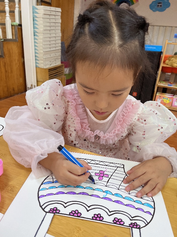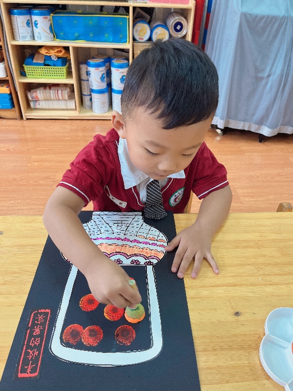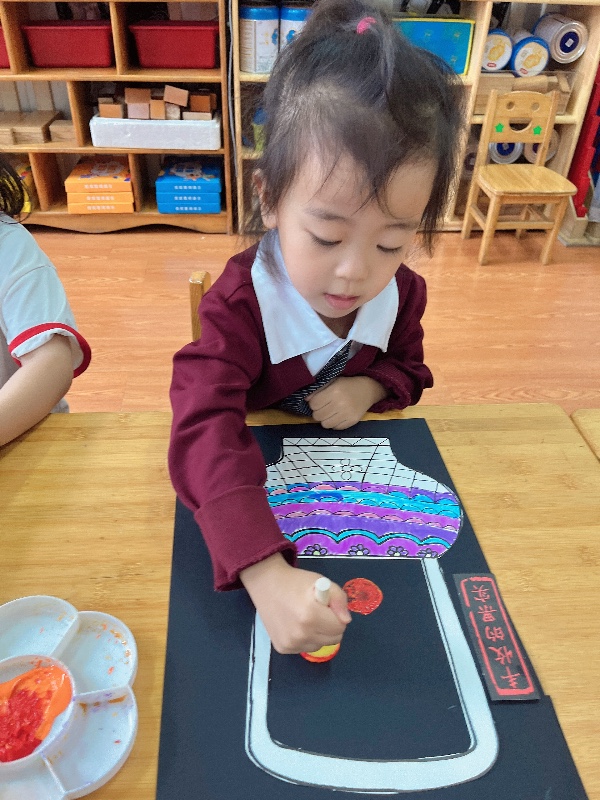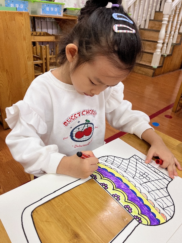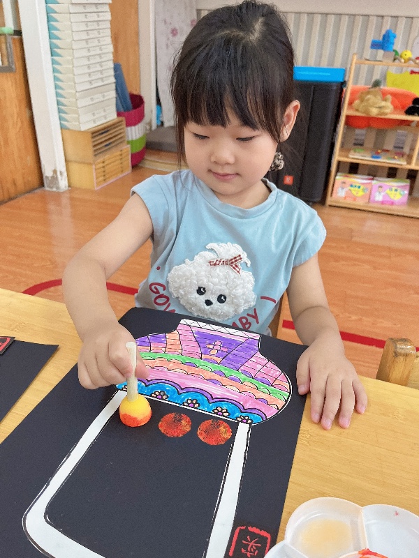 给篮子涂上喜欢的颜色🎨、加上装饰,再用海绵印章印出果实🌟。 一幅充满秋意的画就完成啦~ 秋天的丰收感,狠狠拿捏住~😉