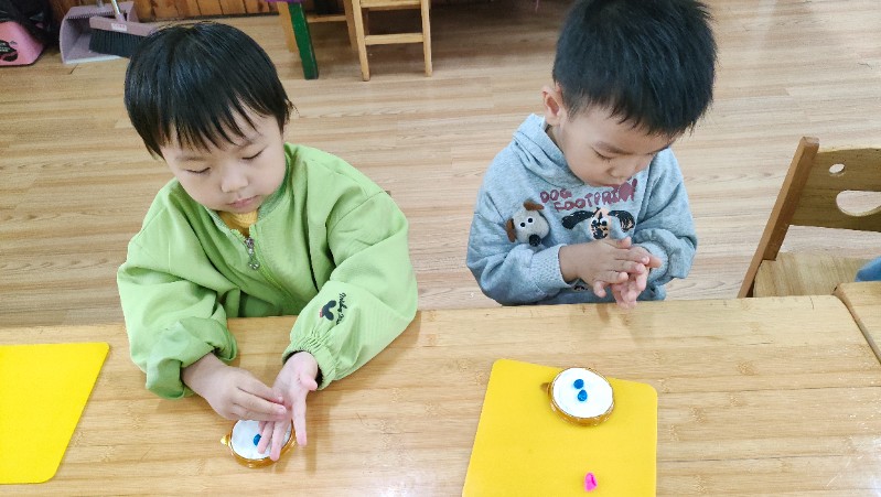 今天我们进行了面塑活动——《好吃的🌈彩虹糖》。引导幼儿了解彩泥的特性和使用方法,以幼儿体验到彩泥的乐趣为目的;教师让幼儿继续尝试和感知彩泥的作用,以孩子体验到制作所带来的快乐,缓解幼儿入园焦虑为主要目的;引导初步尝试团、搓、展、切、捏等手法的运用及掌握,允许幼儿有个别差异,鼓励幼儿自主创作出一件自己的小作品来。