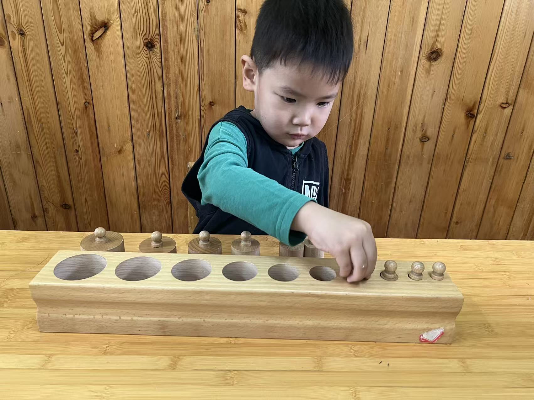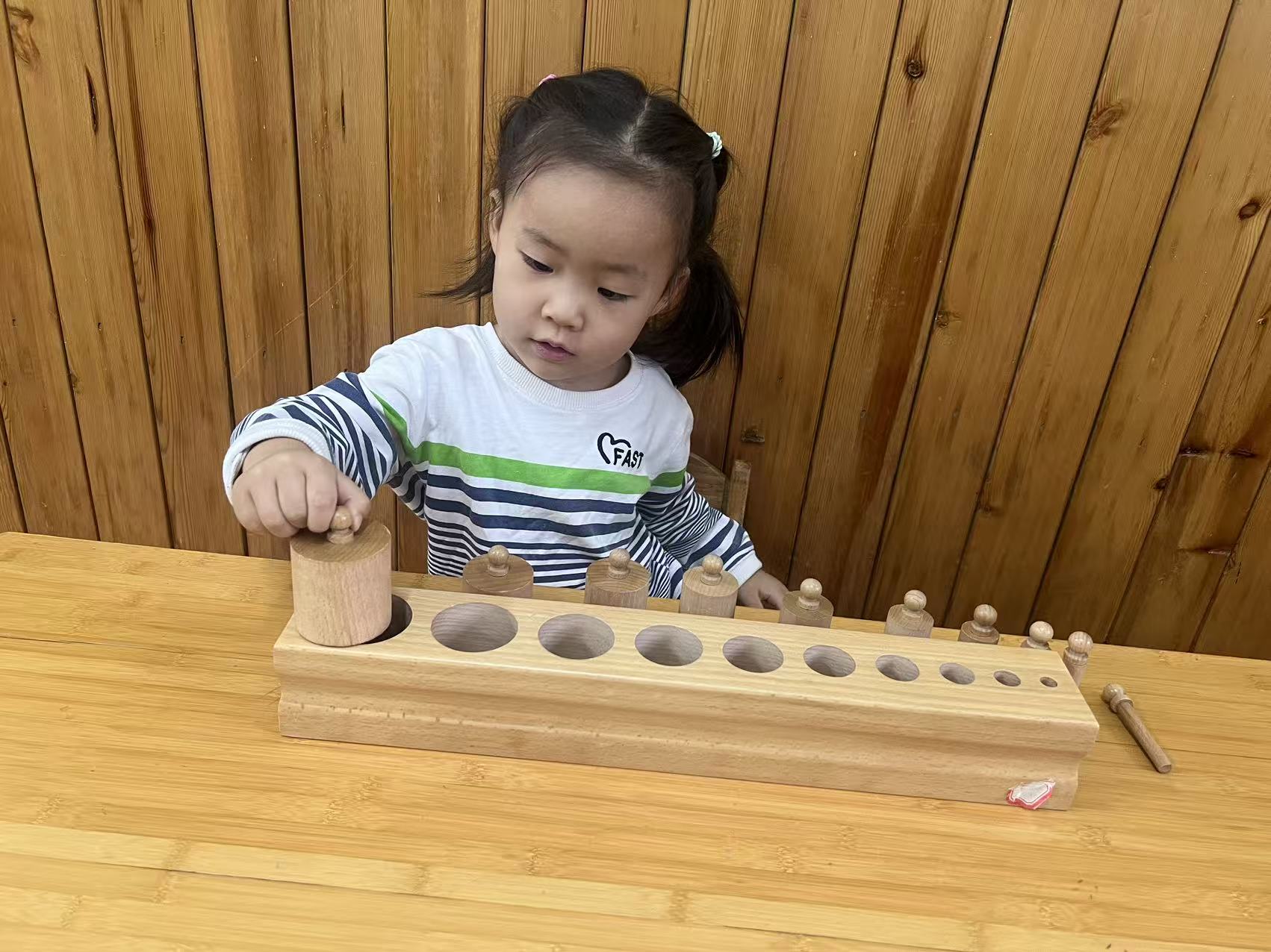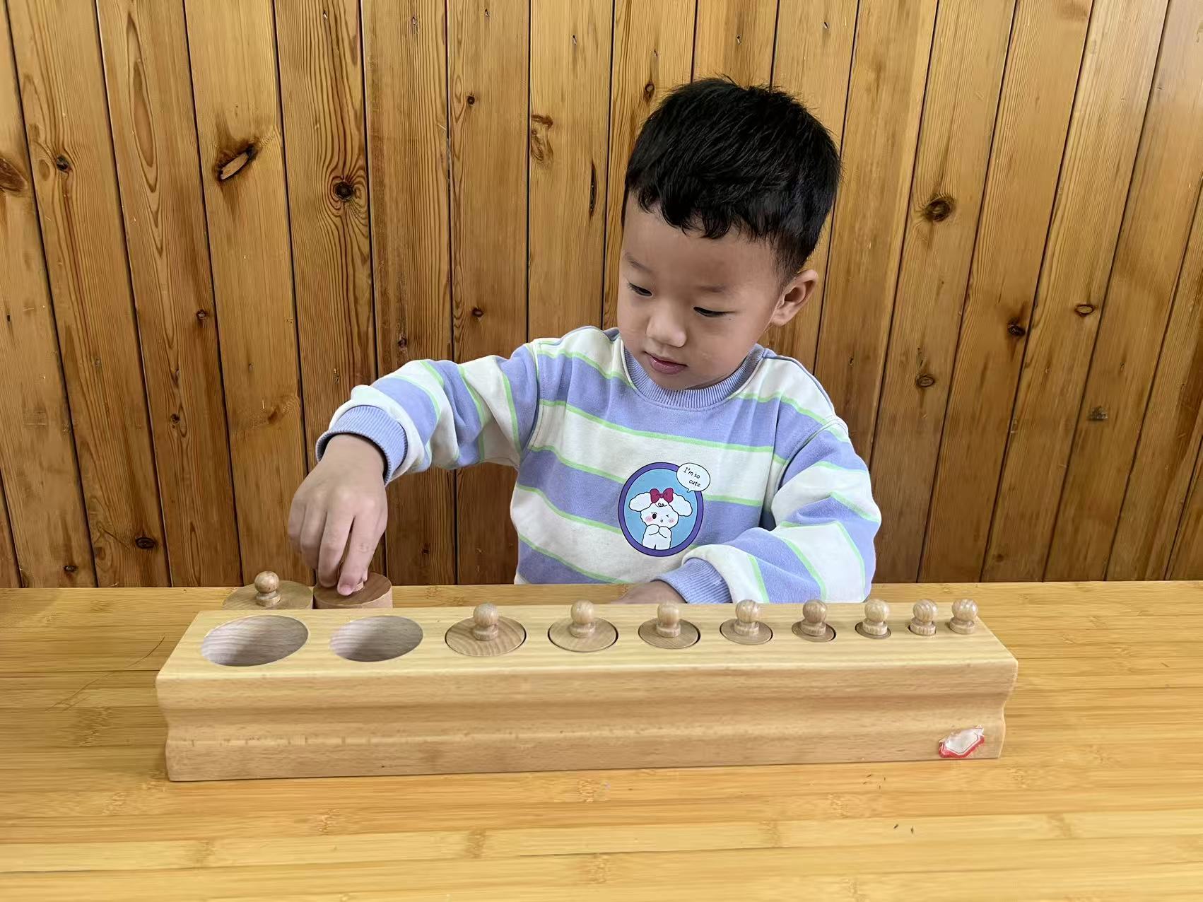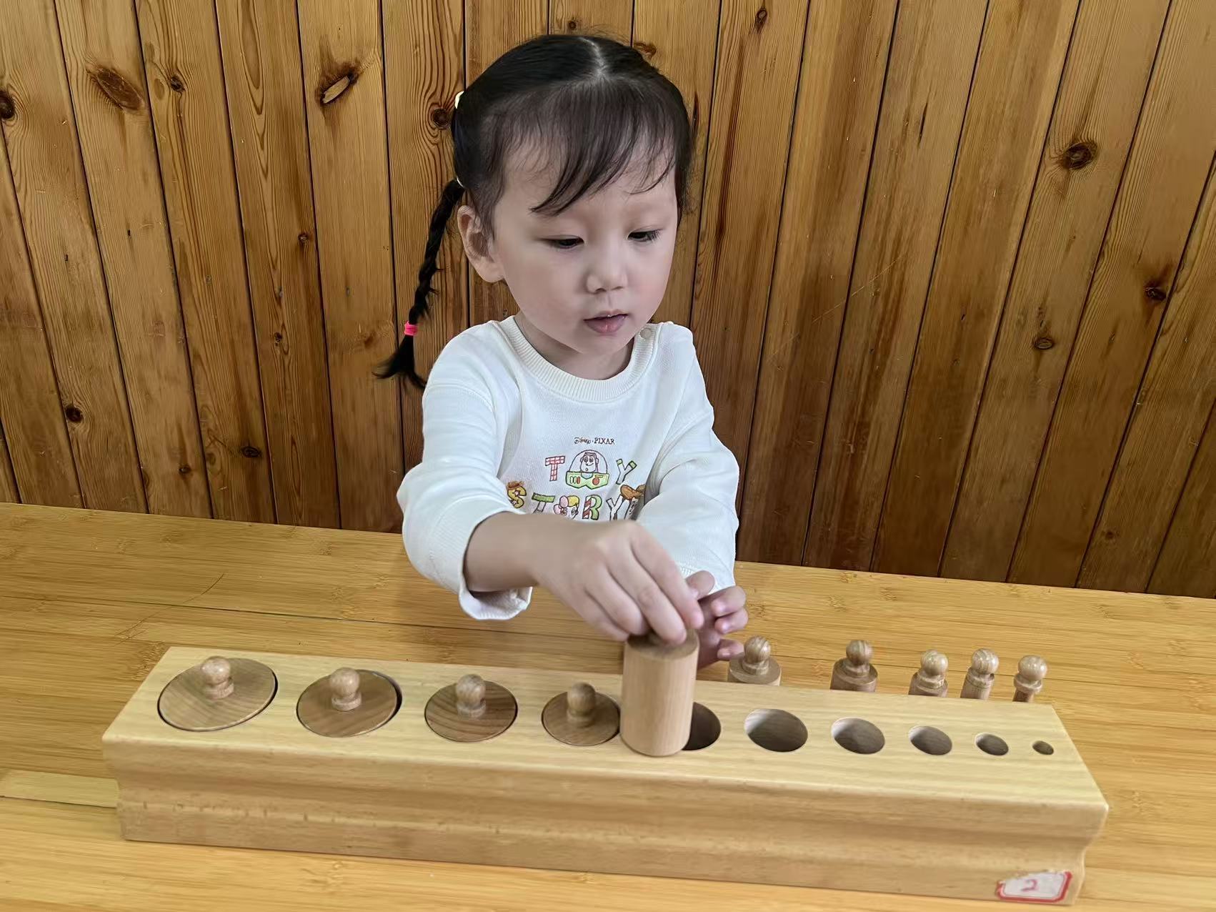 蒙氏操作——《插座圆柱体》:新乡市城建幼儿园小二班