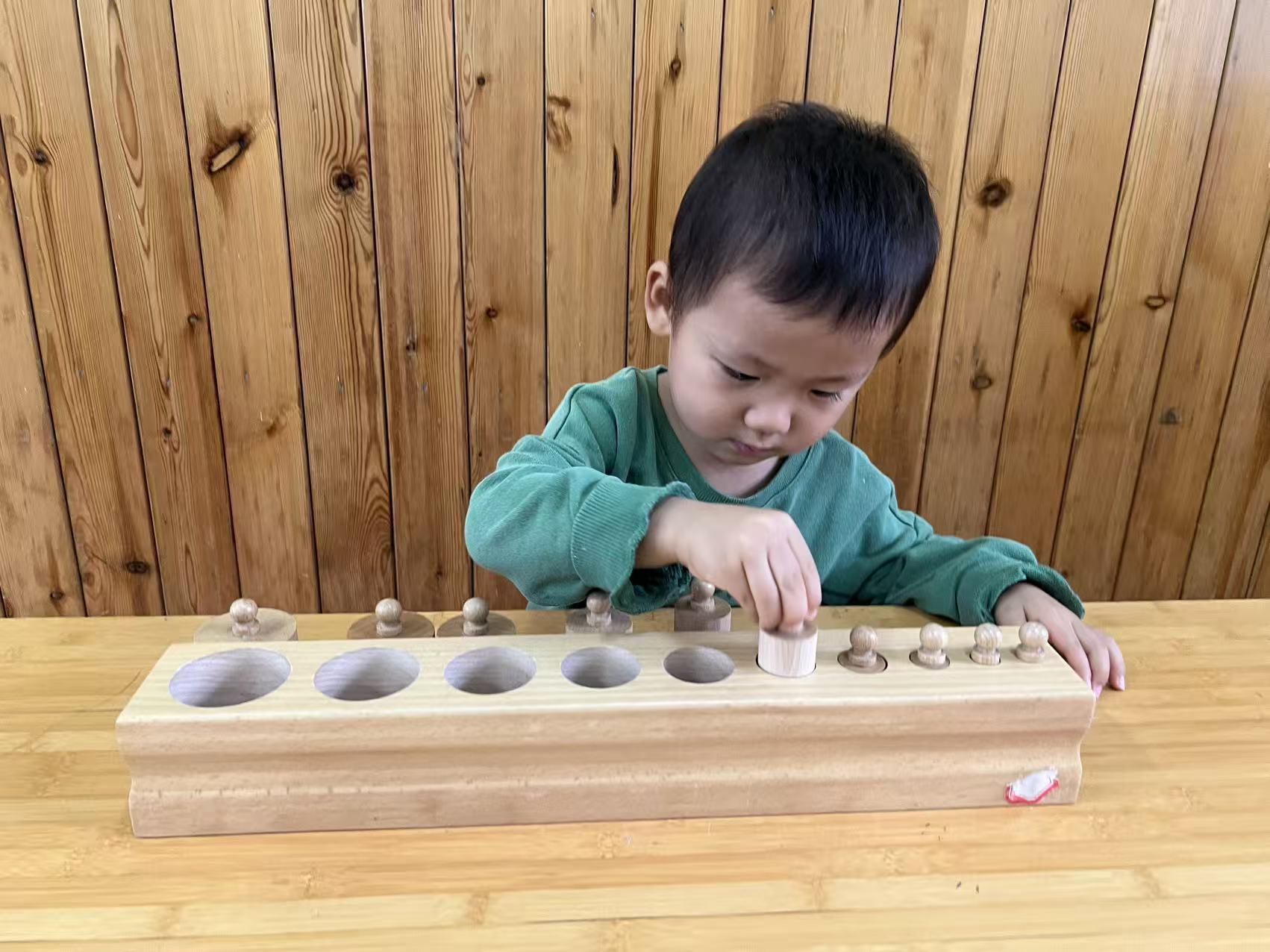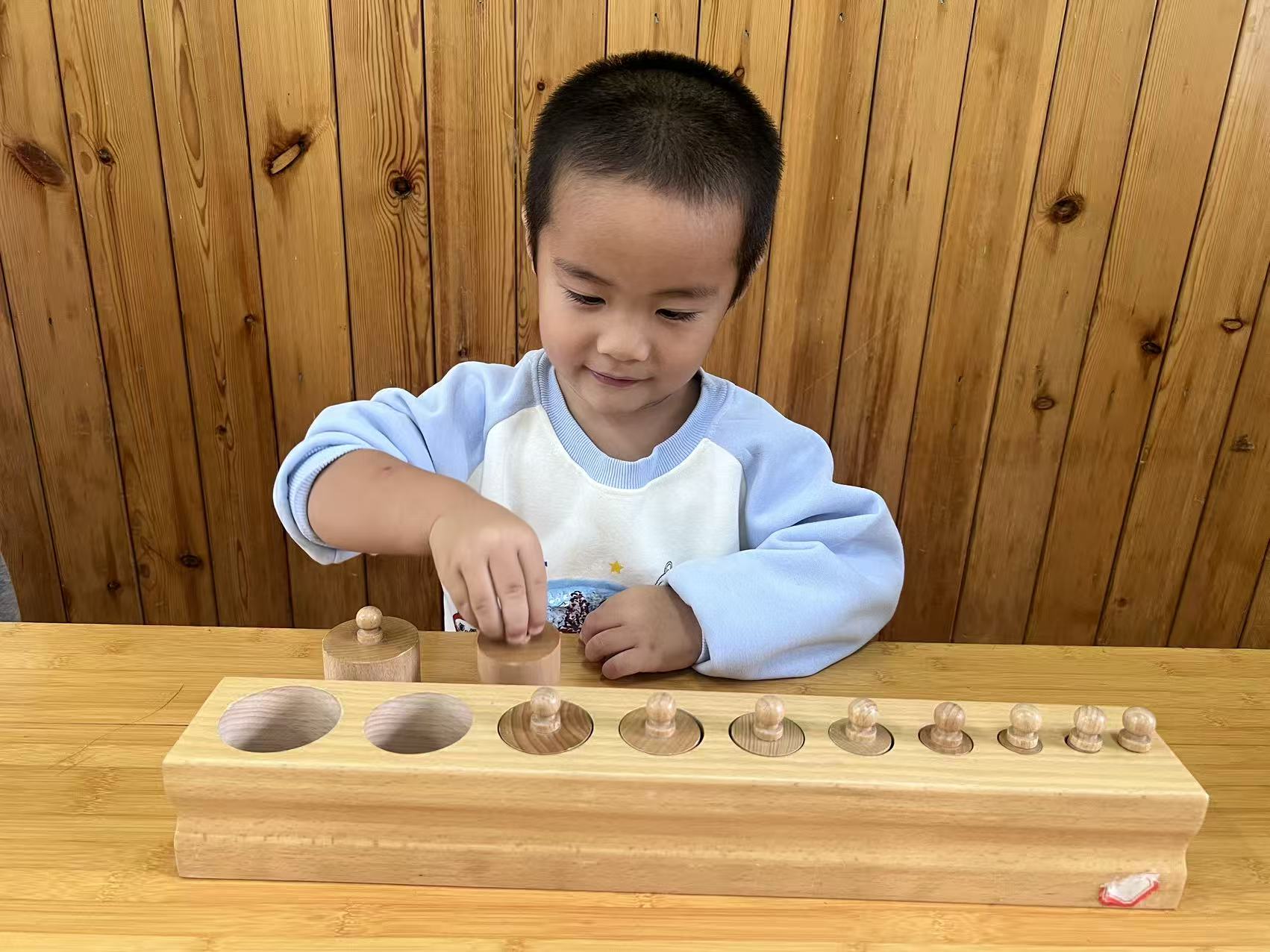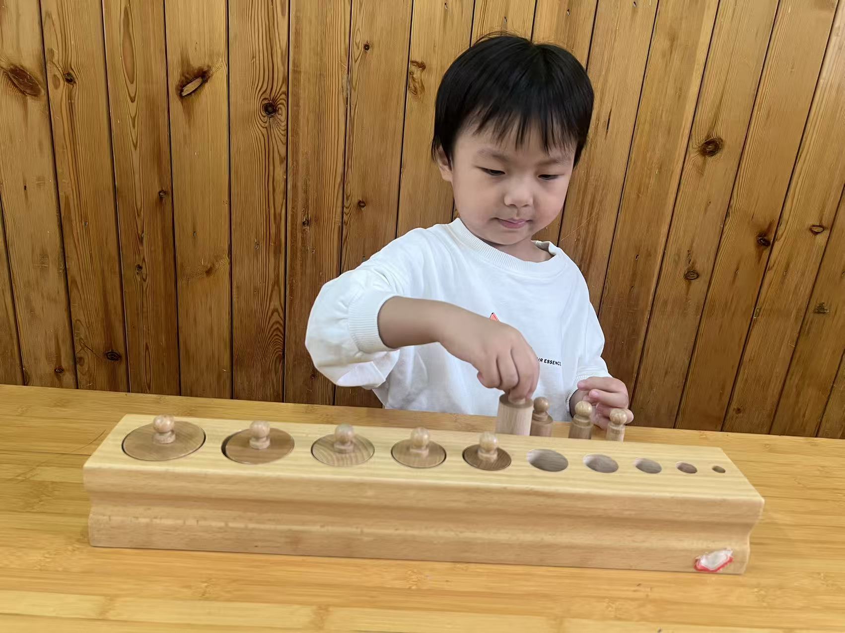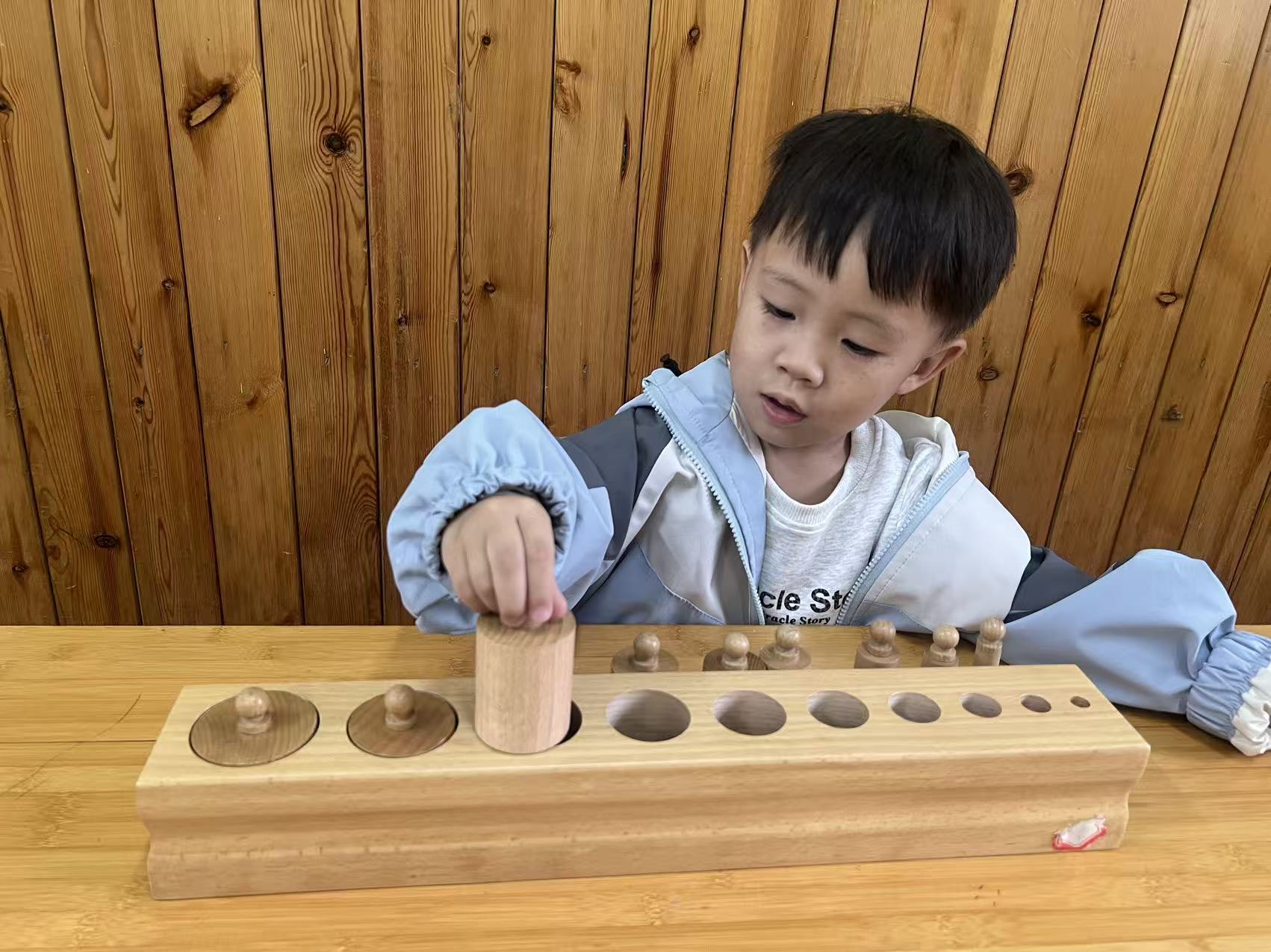 蒙氏操作——《插座圆柱体》:新乡市城建幼儿园小二班