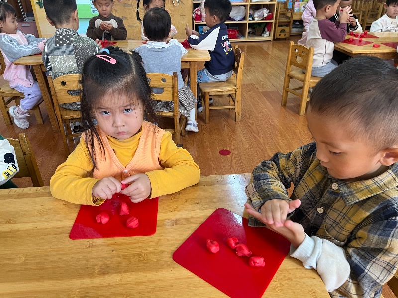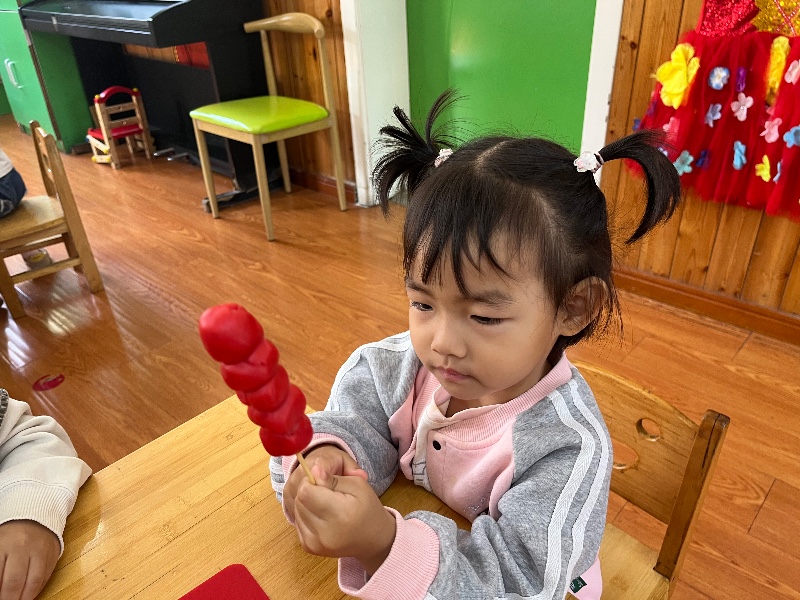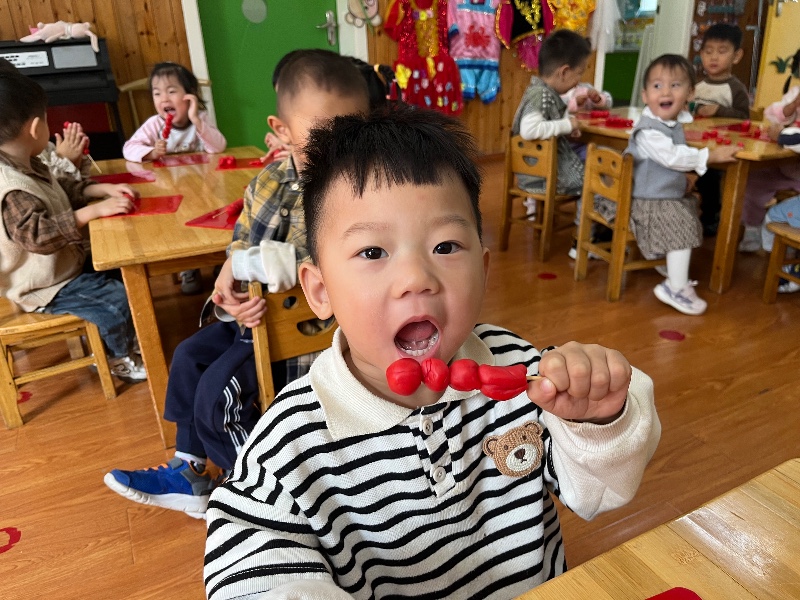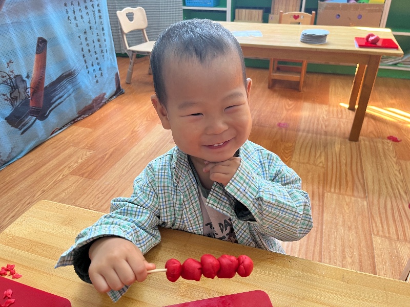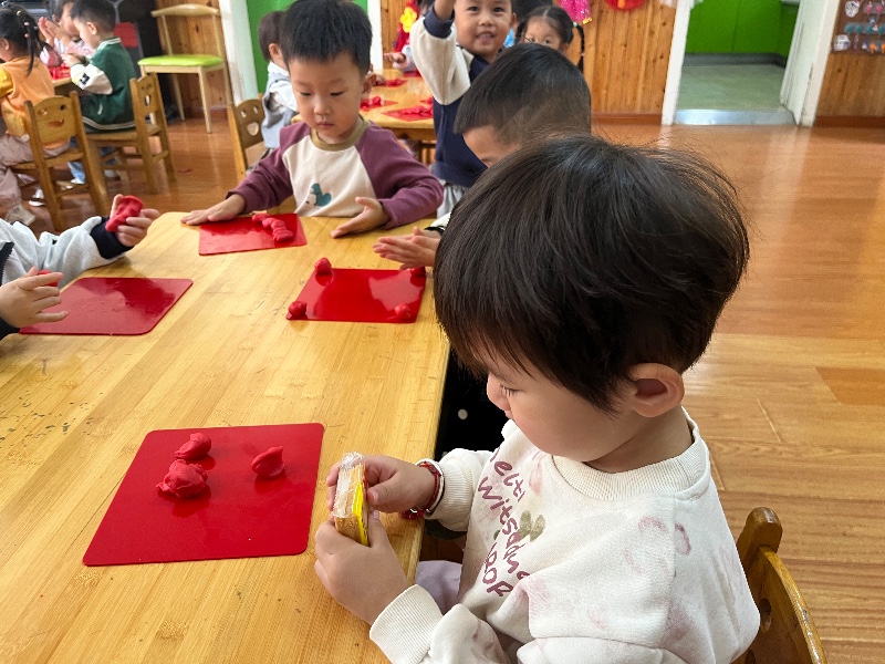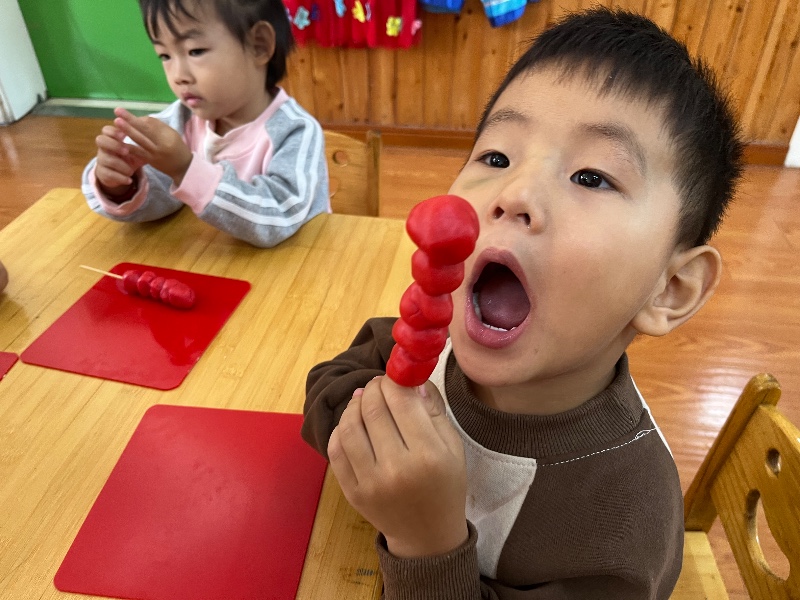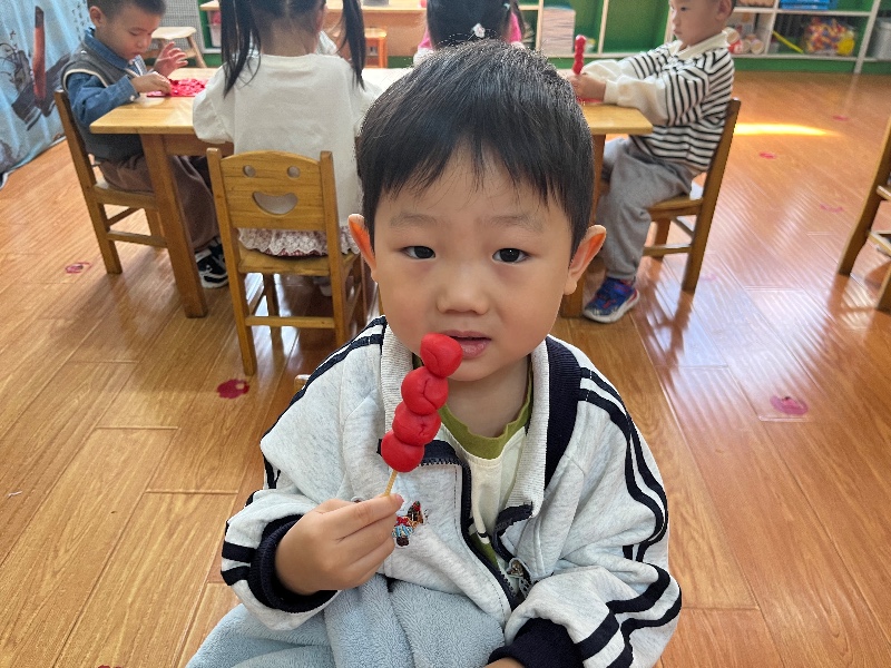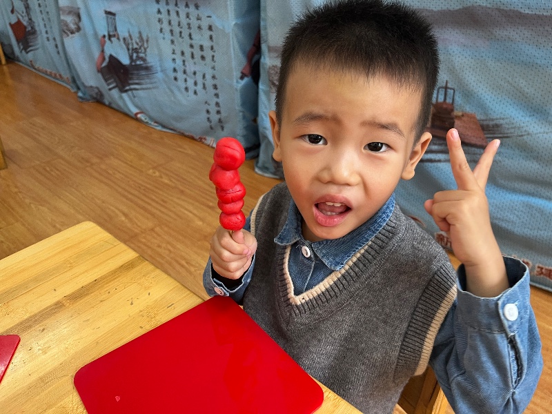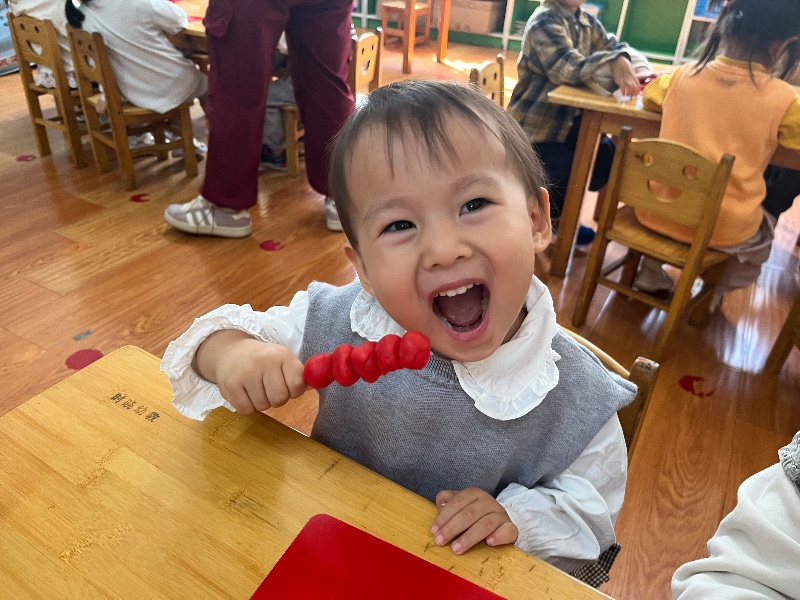 我们今天带领孩子们一起进行了面塑活动——《冰糖葫芦》,幼儿通过对彩泥的特性和使用方法的感知,初步尝试跟随教师的流程进行技法操作。幼儿在教师的引导下初步尝试团、搓、切等手法的运用及掌握,鼓励幼儿创作出一件自己的小作品来。