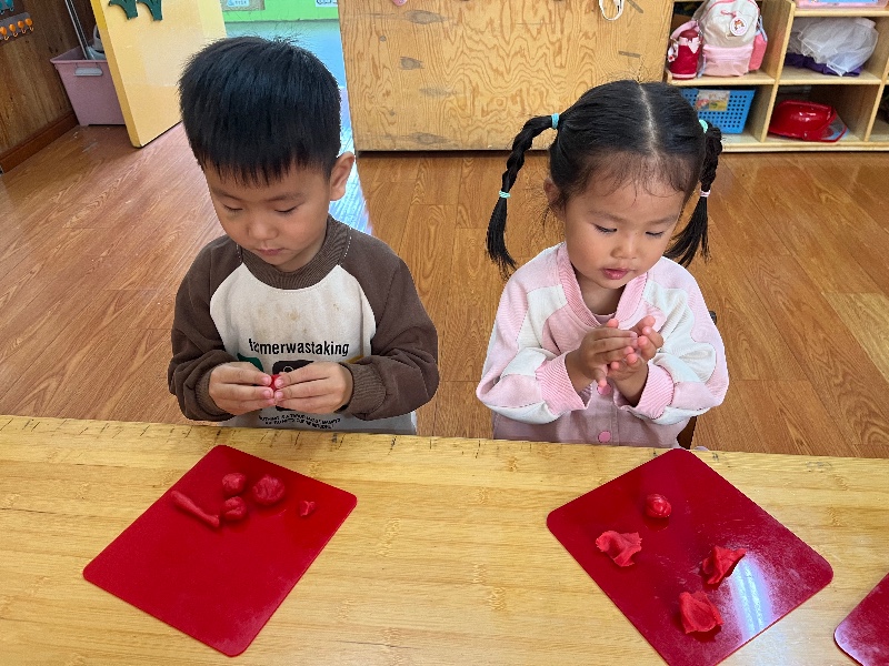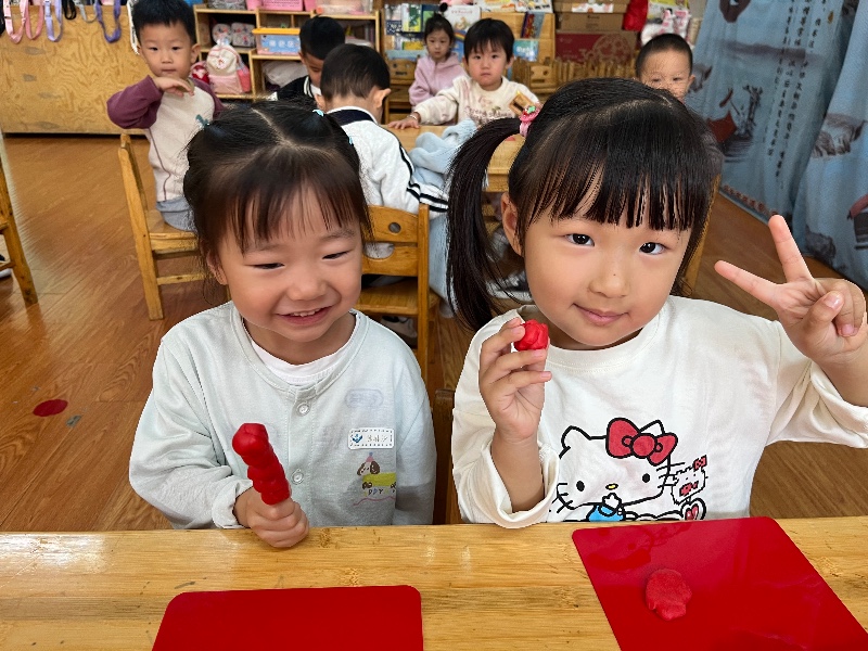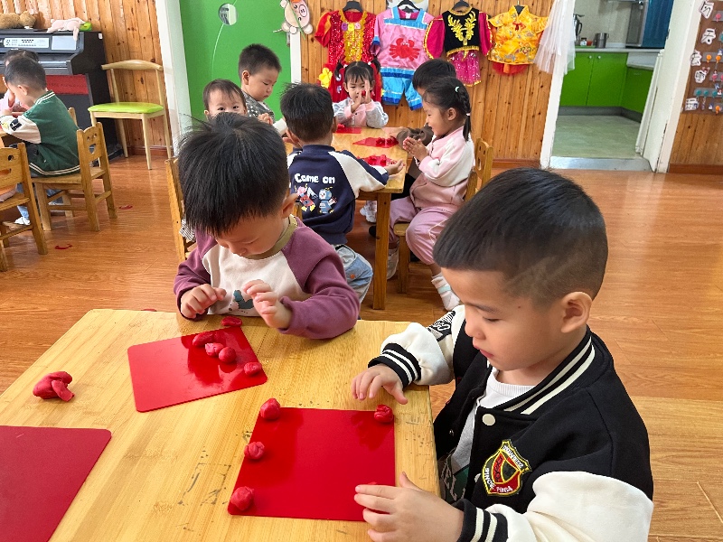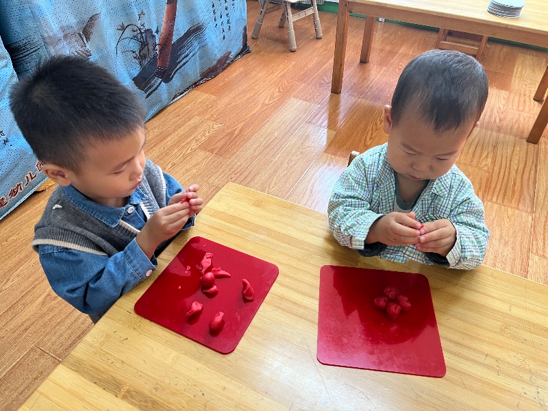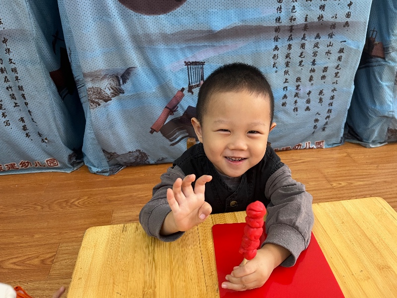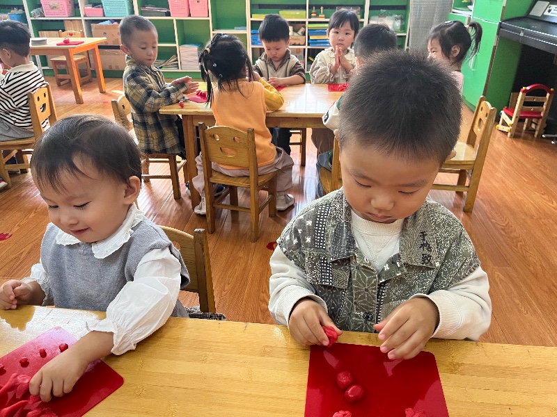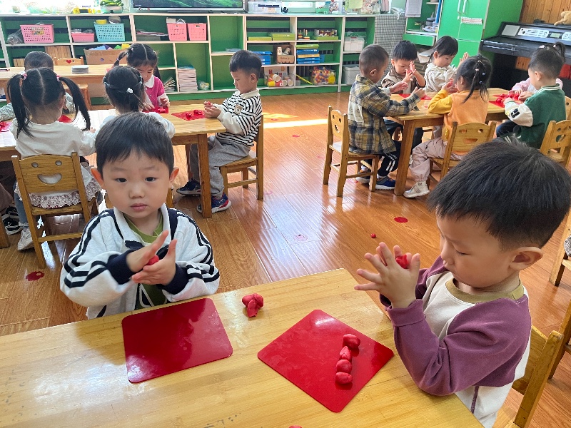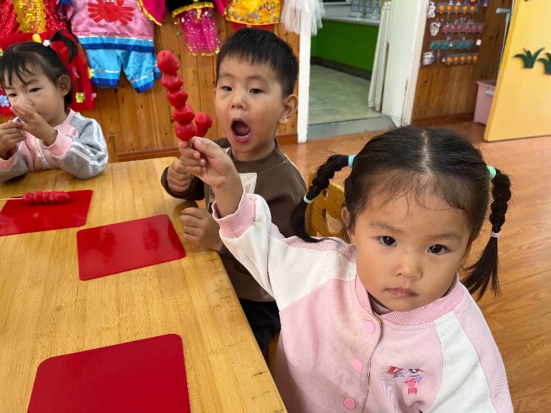 我们今天带领孩子们一起进行了面塑活动——《冰糖葫芦》,幼儿通过对彩泥的特性和使用方法的感知,初步尝试跟随教师的流程进行技法操作。幼儿在教师的引导下初步尝试团、搓、切等手法的运用及掌握,鼓励幼儿创作出一件自己的小作品来。