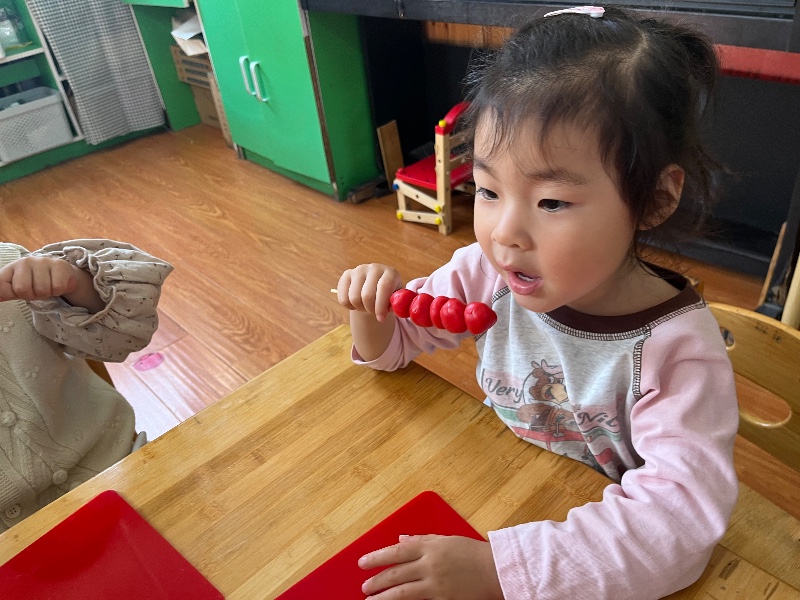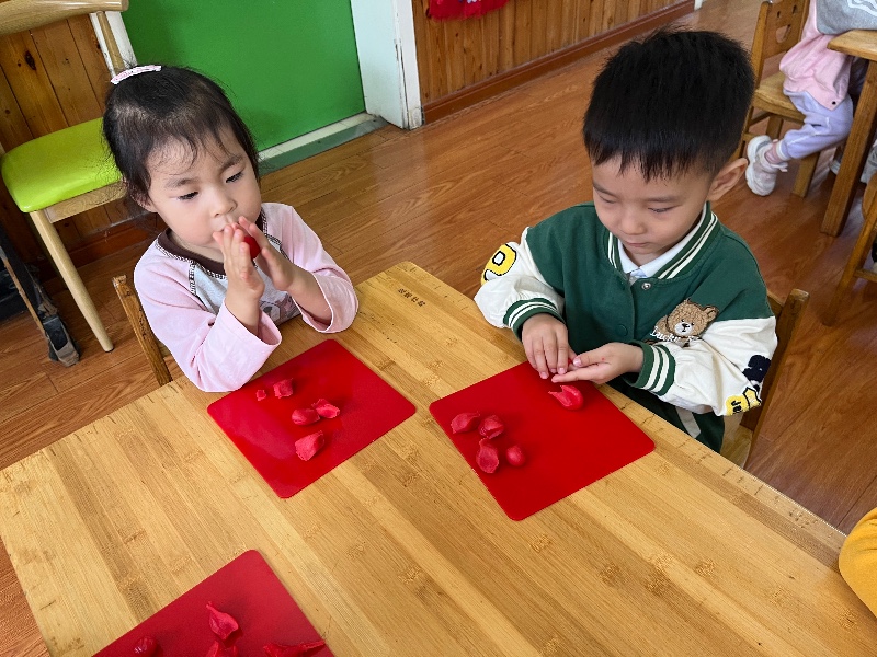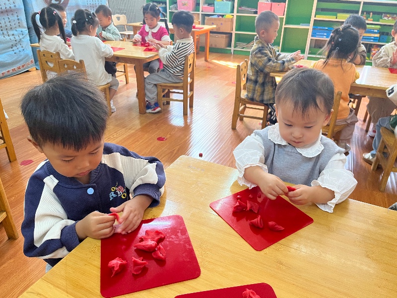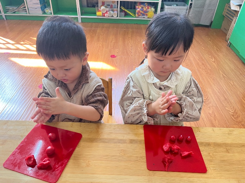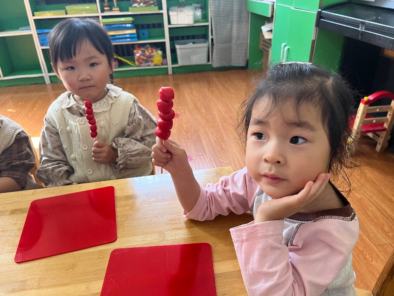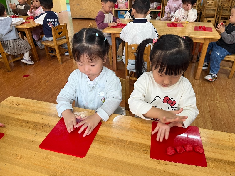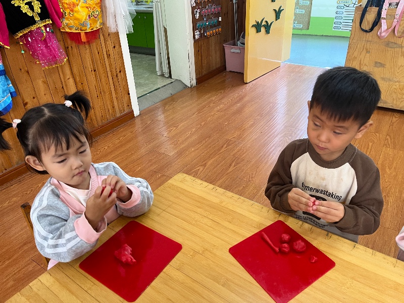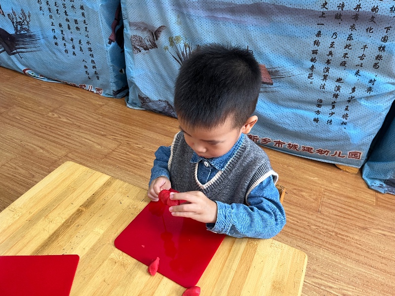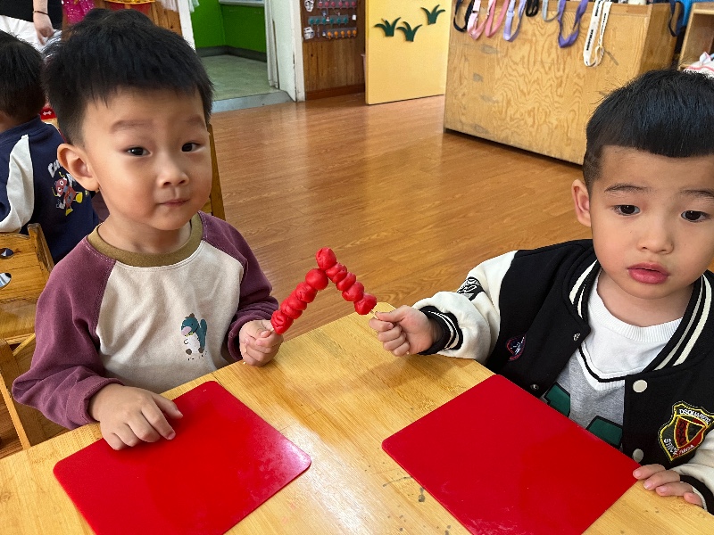 我们今天带领孩子们一起进行了面塑活动——《冰糖葫芦》,幼儿通过对彩泥的特性和使用方法的感知,初步尝试跟随教师的流程进行技法操作。幼儿在教师的引导下初步尝试团、搓、切等手法的运用及掌握,鼓励幼儿创作出一件自己的小作品来。