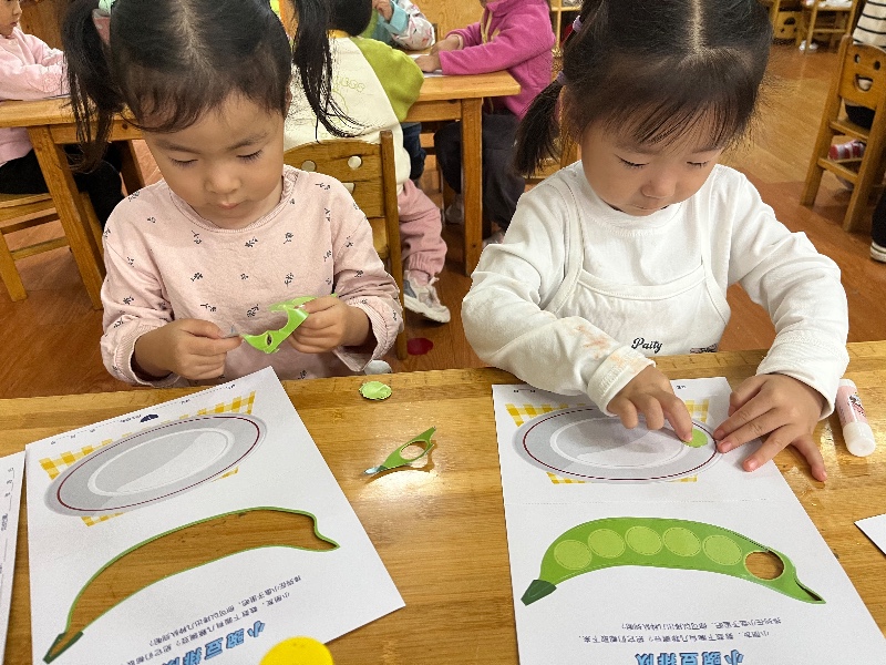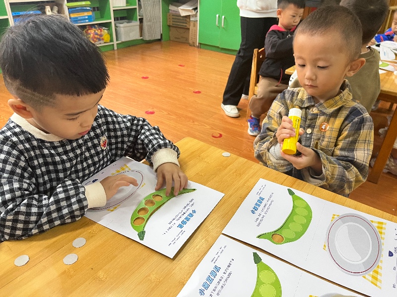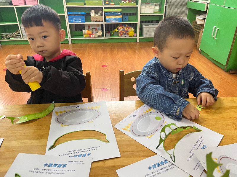 今天我们开展了主题活动《小豌豆排队》,通过活动引导孩子们在给小豌豆排队的游戏中,学会和同伴一个跟着一个排队,并知道人多的时候要排队。